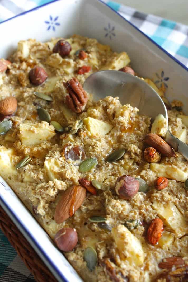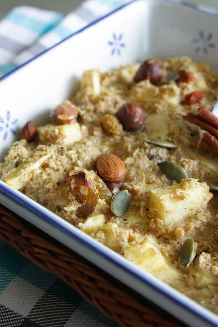 Ben ik net gewend aan het koken van een romig pannetje havermout, begint iedereen zijn havermout te bakken. Ja, ik heb het over ‘baked oats’, oftewel gebakken havermout. Ik zie ze vaak ‘s ochtends op social media voorbij komen. Fleurige ovenschaaltjes met inhoud die verdacht veel van een crumble of appeltaart weg heeft. Willen we dan echt zo graag met taart ontbijten? Want dat mag gewoon hoor, doe ik ook.