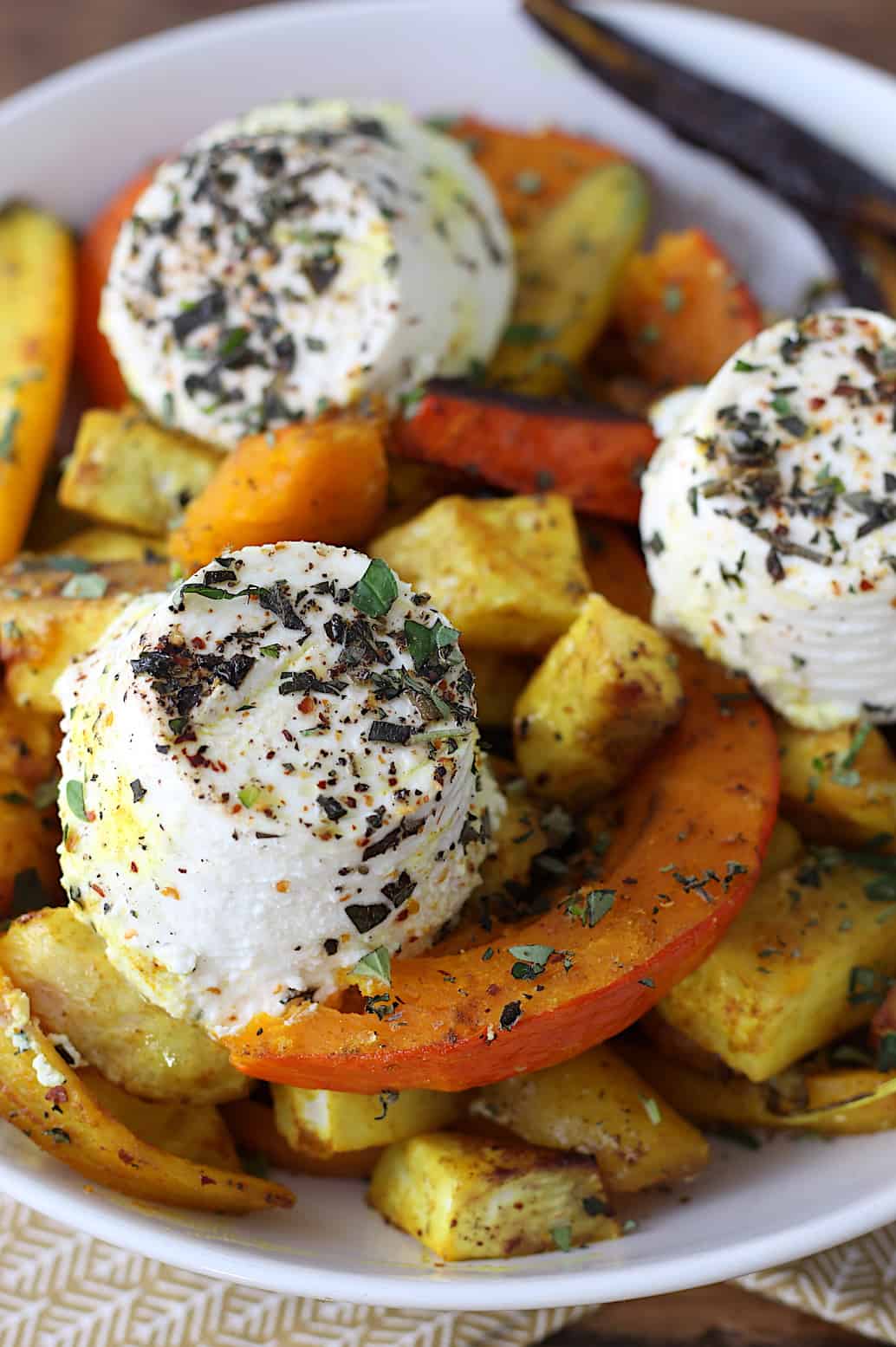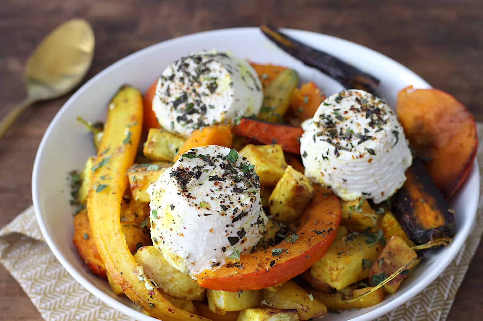 Dat ricotta geweldig is voor taarten, sauzen en smeersels weten we inmiddels wel. Maar dat je ricotta ook heel goed kunt bakken in de oven is misschien iets minder bekend. Heerlijke toevoeging voor als je een dagje geen vlees of vis wilt eten, zeker als je de gebakken ricotta combineert met deze kruidige herfstgroenten.