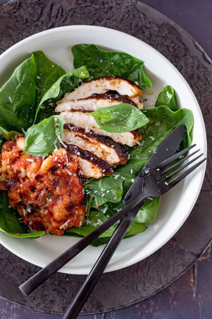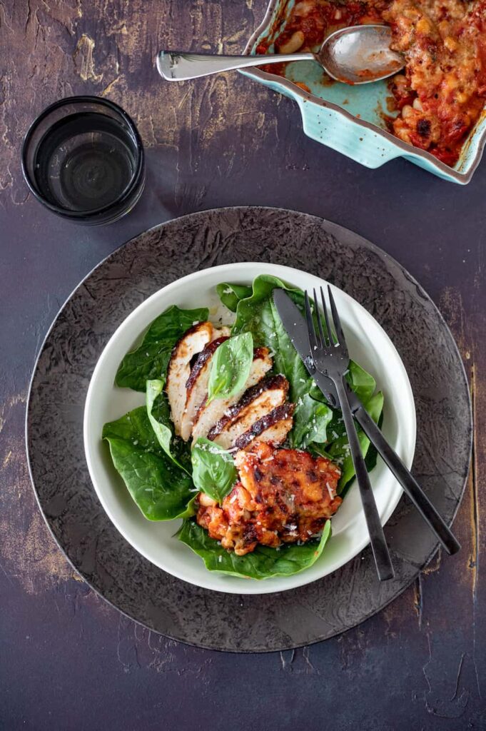 Witte bonen in tomatensaus, dat vind ik dus echt heerlijk! Maar dan wel met een twist. Zoals in dit recept waar ik de cannellini bonen heb gecombineerd met tomaat en kruiden en daarna gegratineerd in de oven. Daar kwam nog wat kipfilet bij die na het braden is afgeblust met balsamicoazijn. Een heerlijk gerecht in combinatie met de spinazie. Wedden dat jij ook je vingers erbij aflikt?