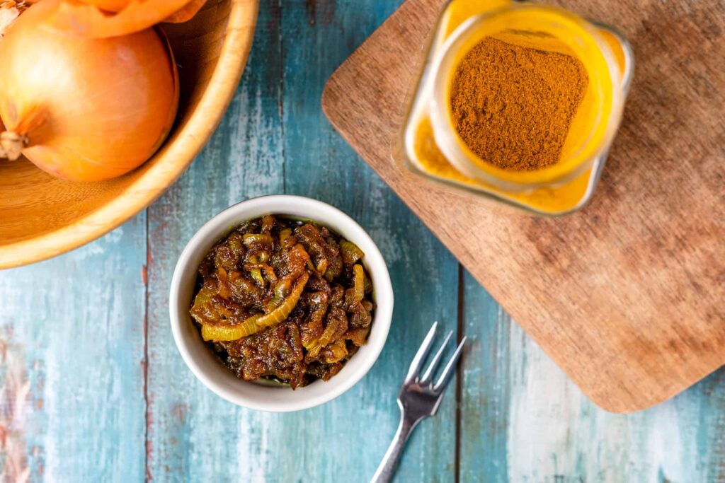 Vandaag deel ik met jullie mijn recept voor gekarameliseerde uien met masala. Waarvoor ik aan het basisrecept van gekarameliseerde ui nog wat Surinaamse masala specerijen heb toegevoegd en dat is echt een waanzinnige combinatie. Je kunt de uien natuurlijk ook plain karameliseren zonder toevoeging van de masala, laat deze er dan uit en dan heb je de reguliere gekarameliseerde uien te pakken die ook zalig zijn.