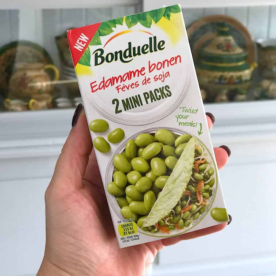 Handige, nieuwe kleinverpakkingen van Bonduelle met edamame bonen. Ik heb er gelijk een paar van in de voorraadkast gezet, want wij zijn thuis dol op deze bonen! Door een salade bijvoorbeeld of gebakken met knoflook en zeezout als bijgerecht. Verkrijgbaar bij vrijwel alle supermarkten.