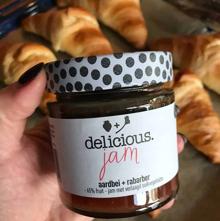 Razend enthousiast ben ik over de jam van het foodmagazine delicious. Barstensvol fruit en met een verlaagd suikergehalte waardoor de jam frisser wordt. De smaak aardbei + rabarber is bij ons favoriet. Je koopt ‘m in hun eigen webshop of bij Albert Heijn.