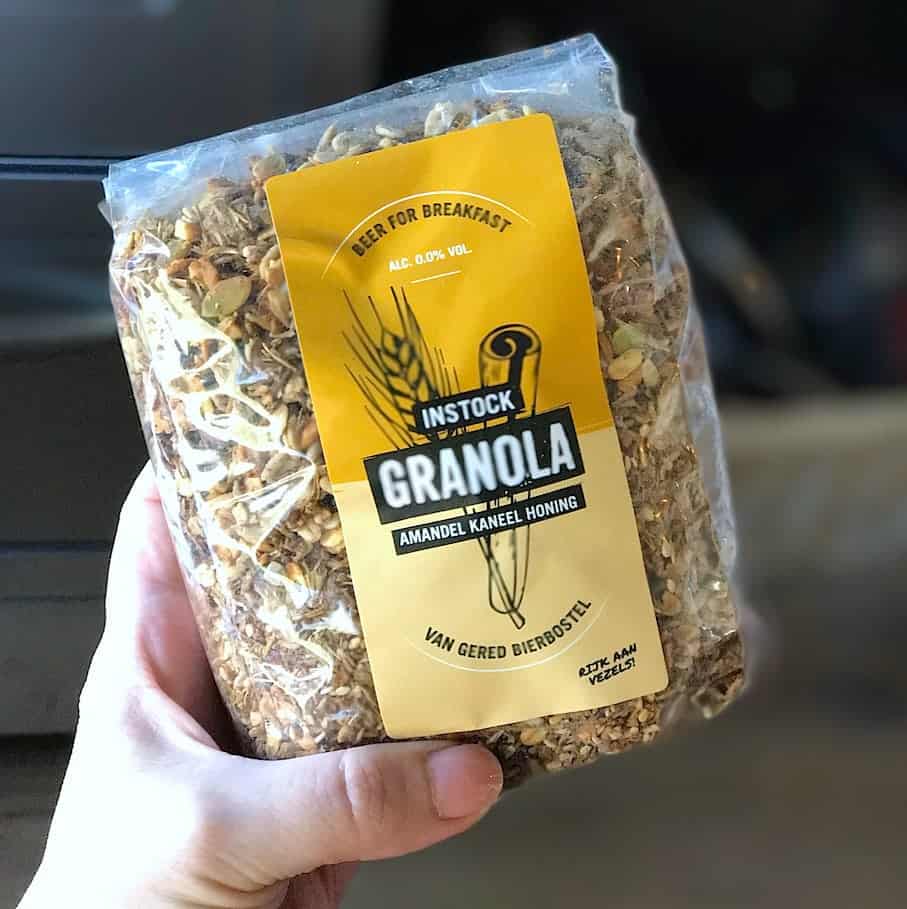 Deze granola van Instock wordt gemaakt van gered bierborstel. Inderdaad, ze maken granola van bier en dat is verschrikkelijk lekker. Knapperig en barstensvol vezels, ik ben fan. Je koopt de granola bij de Instock vestigingen in Amsterdam, Utrecht of Den Haag of online op LoopedGoods.