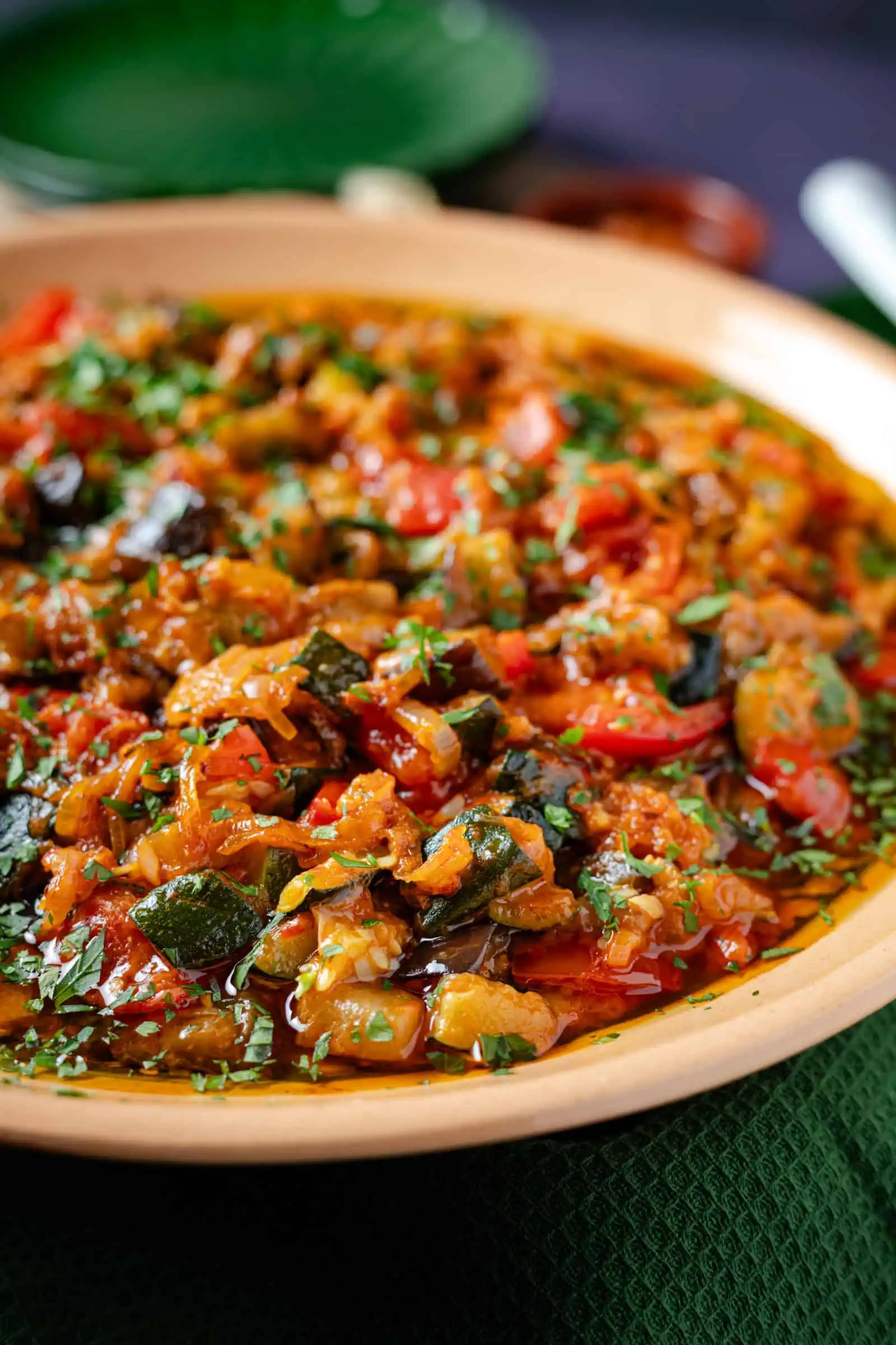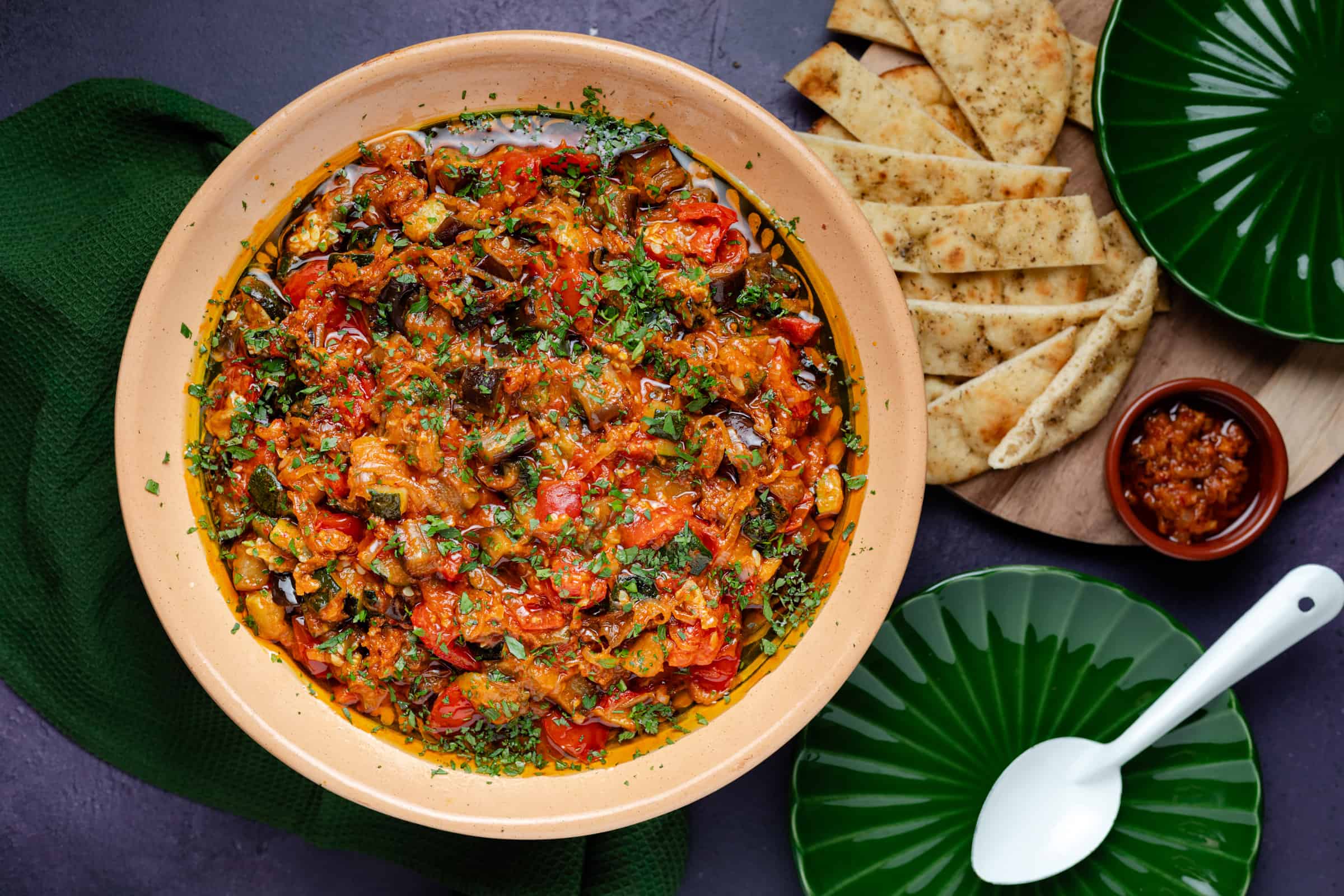 - Je kunt deze geroosterde groenten lauwwarm of zelfs koud serveren (wel op kamertemperatuur voor meer smaak). Schep de groenten in een mooie schaal of bakje met de pul biber olie. Schenk er ook nog ‘verse’ olijfolie uit de fles over en bestrooi met extra pul biber en fijngehakte peterselie. Lekker met vers gebakken stokbrood, naan of Turks brood.