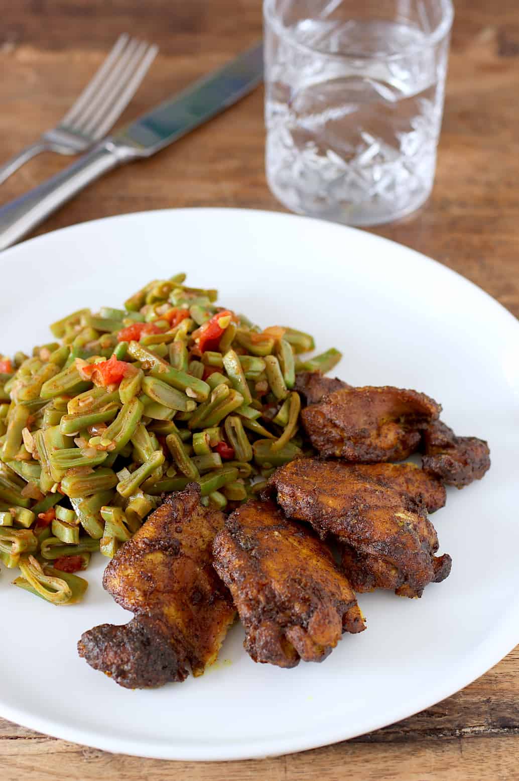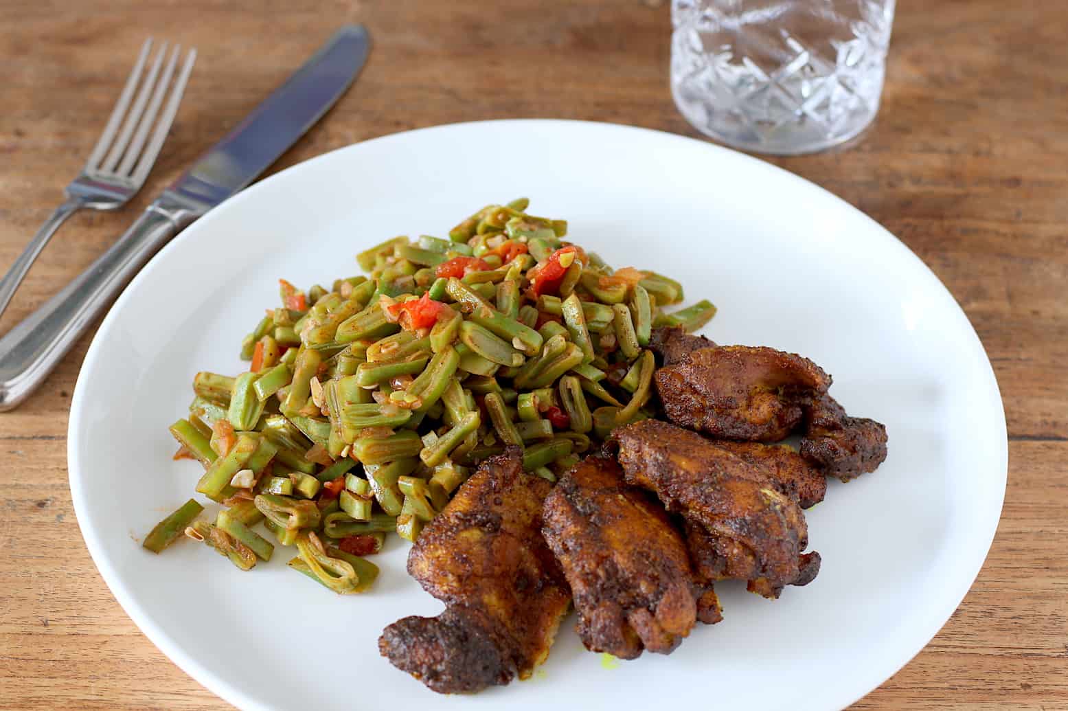 - Serveer de kippendijen met de snijbonen. En eventueel witte rijst voor de liefhebbers.
