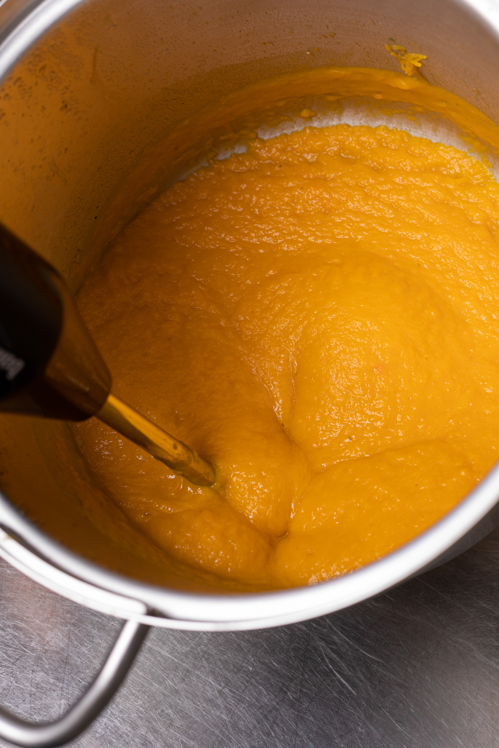 - Zonder bamix kun je deze soep uiteraard ook maken. Maar als je een gewone staafmixer gebruikt, zou ik adviseren om de schil van de flespompoen wel te verwijderen. Die krijg je anders niet goed fijngemalen.