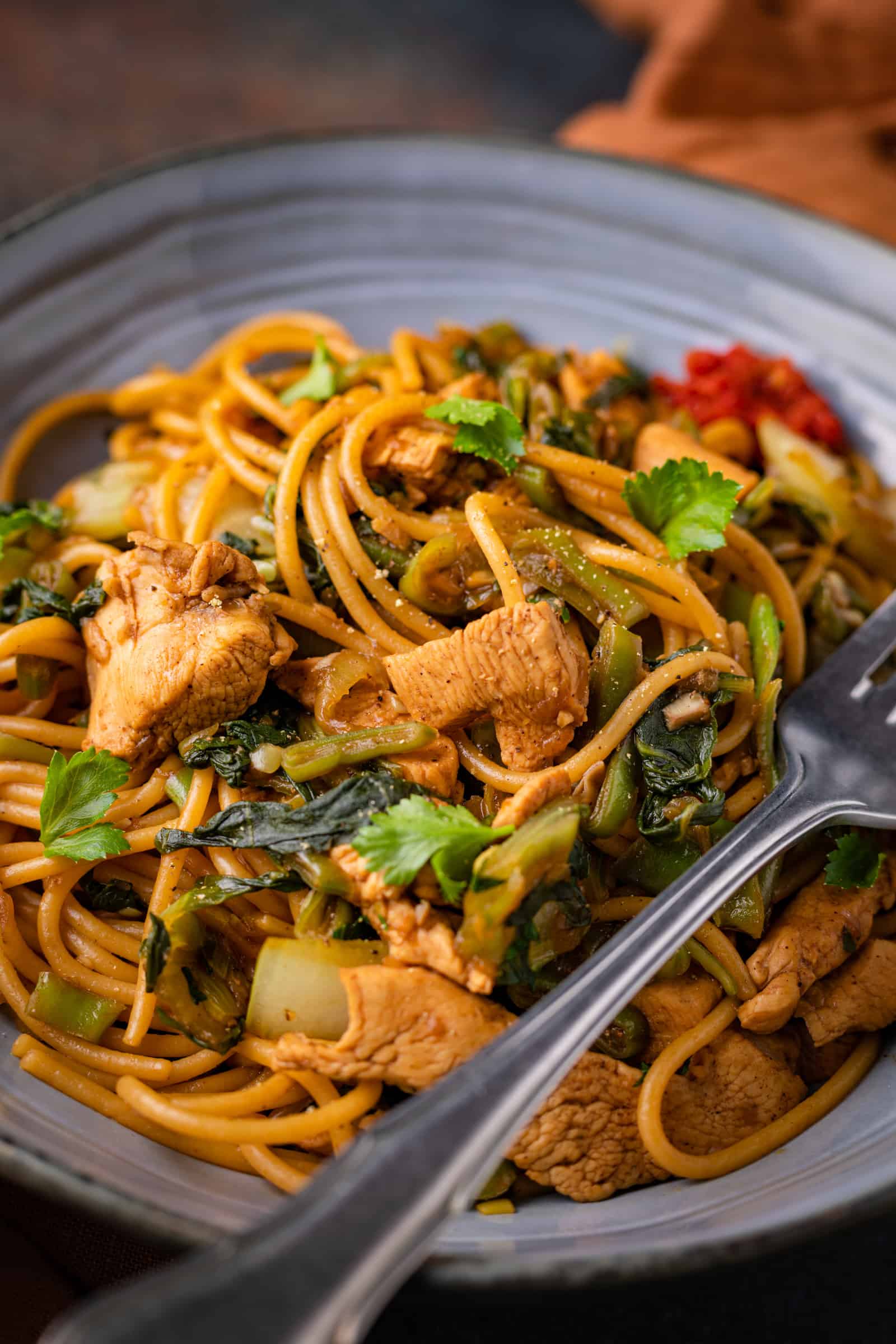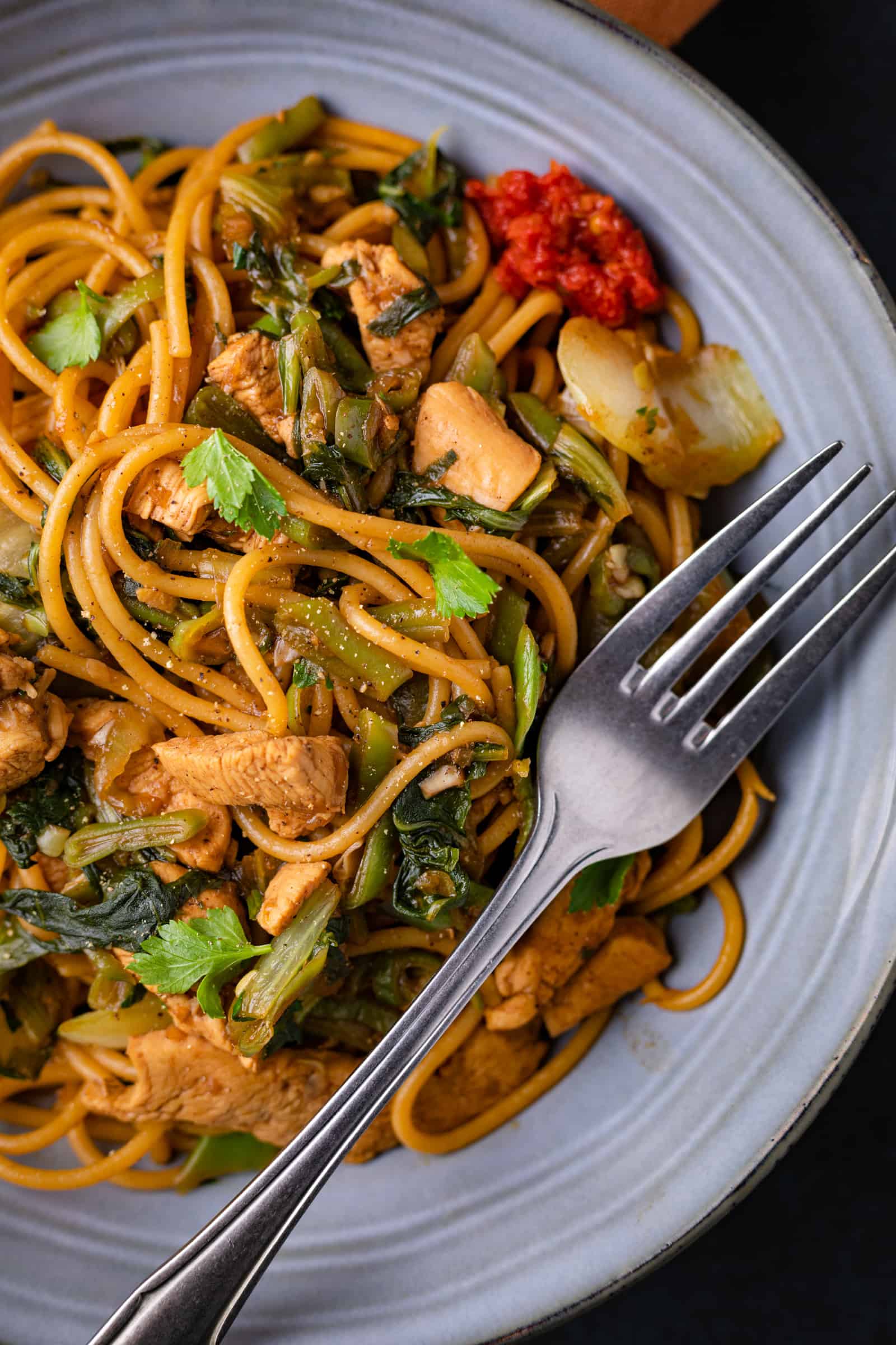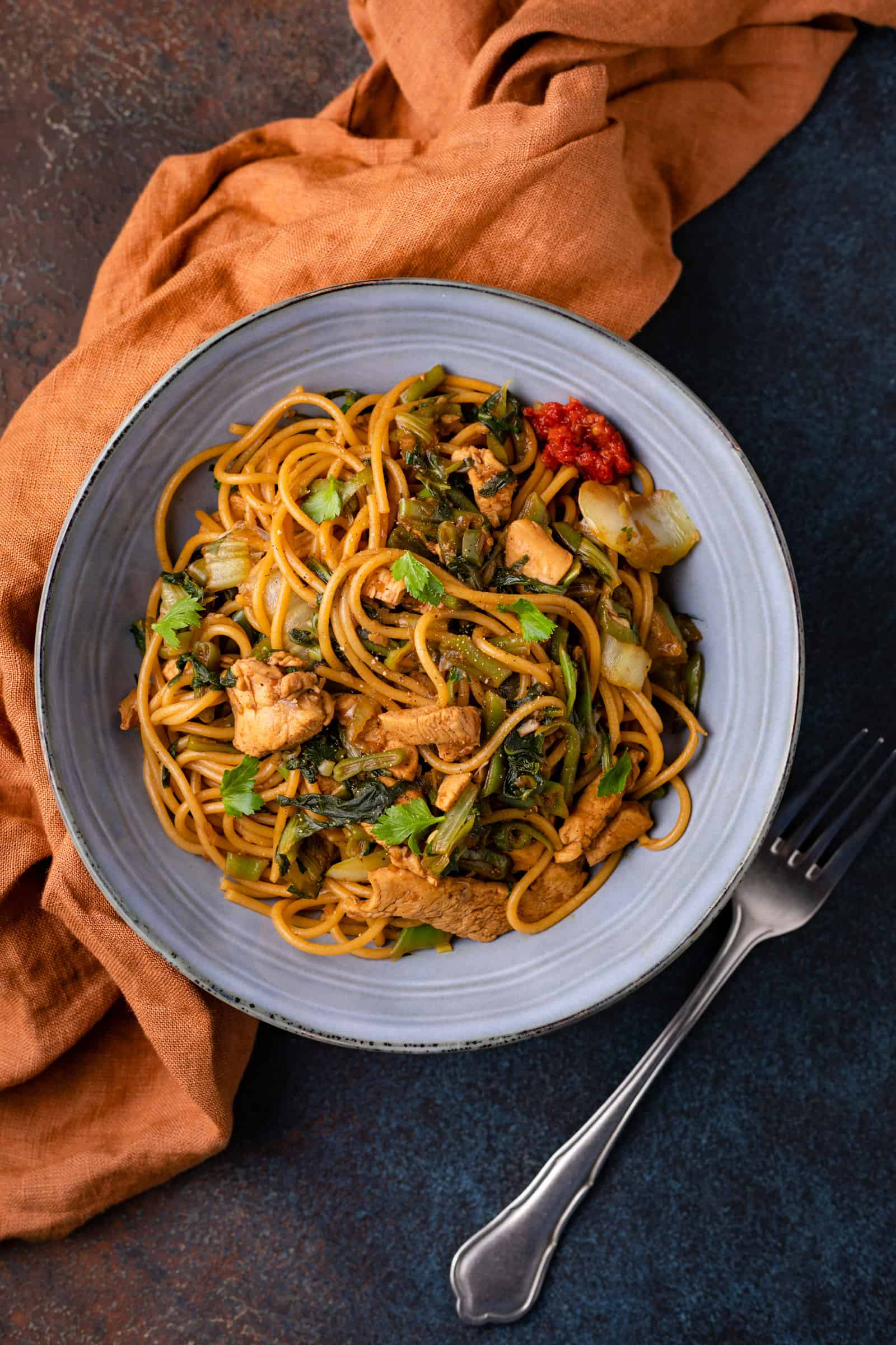 - Liever vega(n)? Vervang de kip door vegetarische kipstukjes, gemarineerde tofu of eet de bami met alleen groenten.