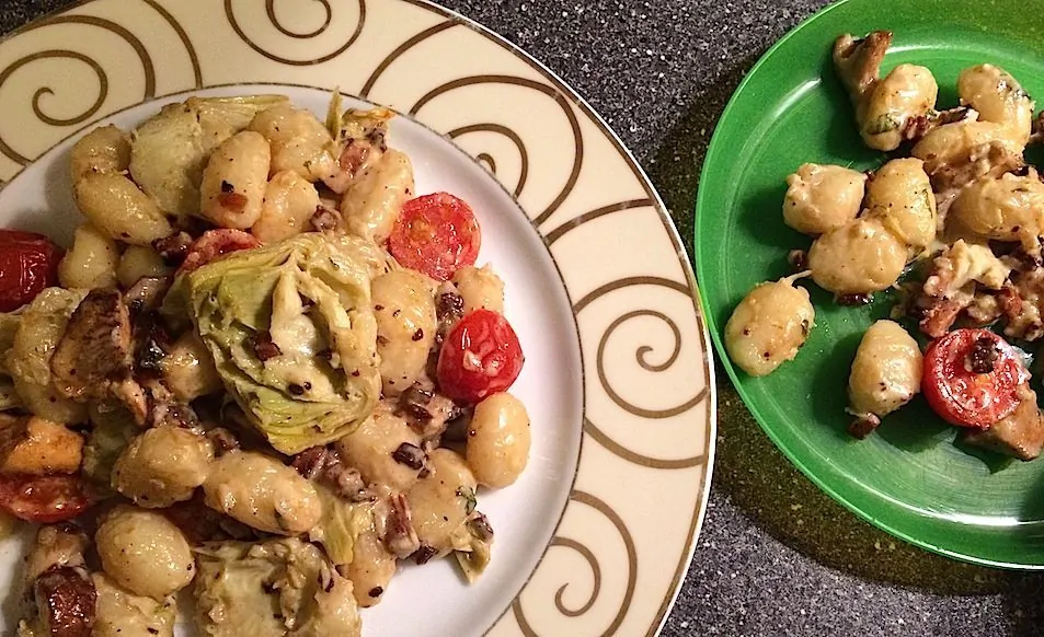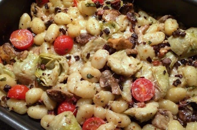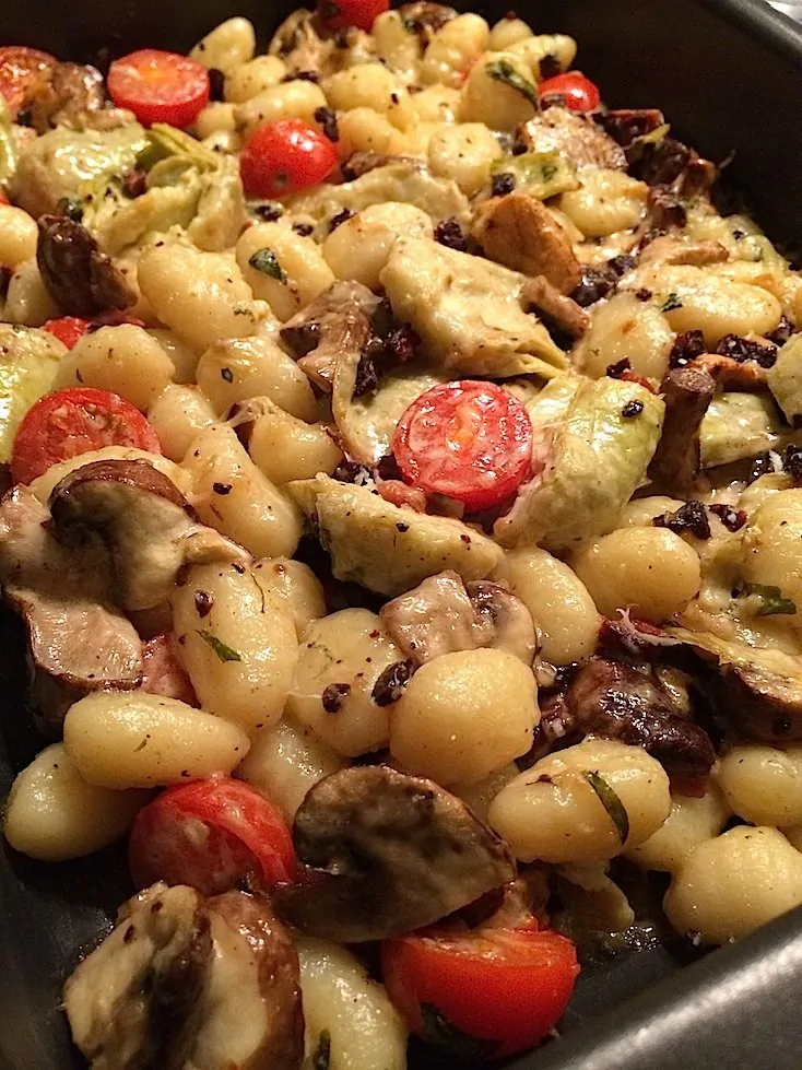 Dit recept heb ik vorige week uit de Allerhande gehaald. Ik was even een dag inspiratieloos (ja, zelfs ik heb daar wel eens last van) en was gecharmeerd van de foto en de ingredienten. En de melding dat dit een kids favoriet is, sprak me ook aan. Want die avond dineerden mijn peuter en ik samen. Dit vegetarische recept voor gnocchi uit de oven met paddenstoelen is zo gemaakt en smaakt heerlijk. Lekkere aardse smaken bij elkaar, ik werd er blij van. En die peuter van me ook dus de lieve mensen van Allerhande hadden geen woord gelogen. Ik heb nog wel een paar dingen getweakt aan het recept, maar ja what else is new 🙂