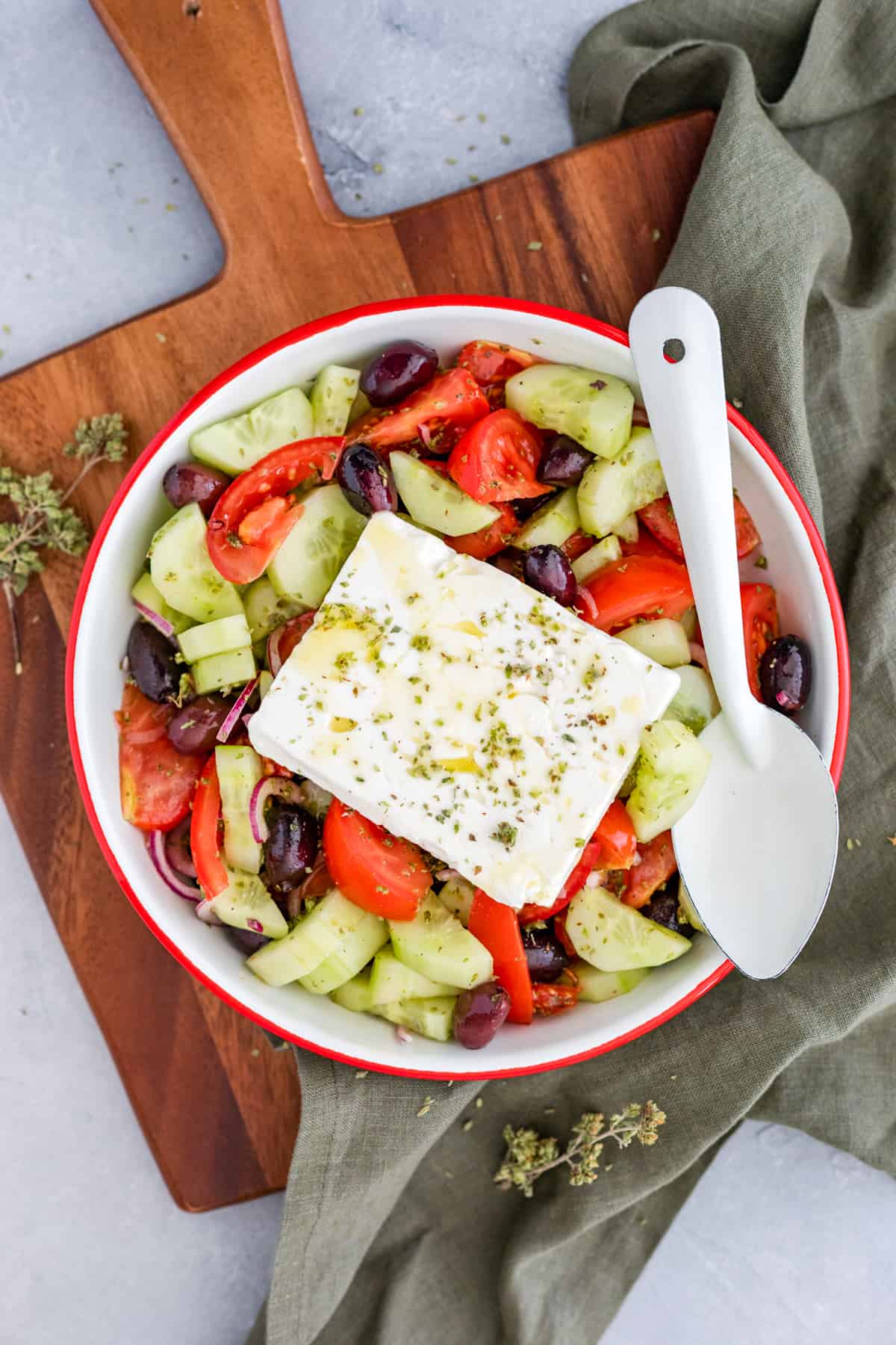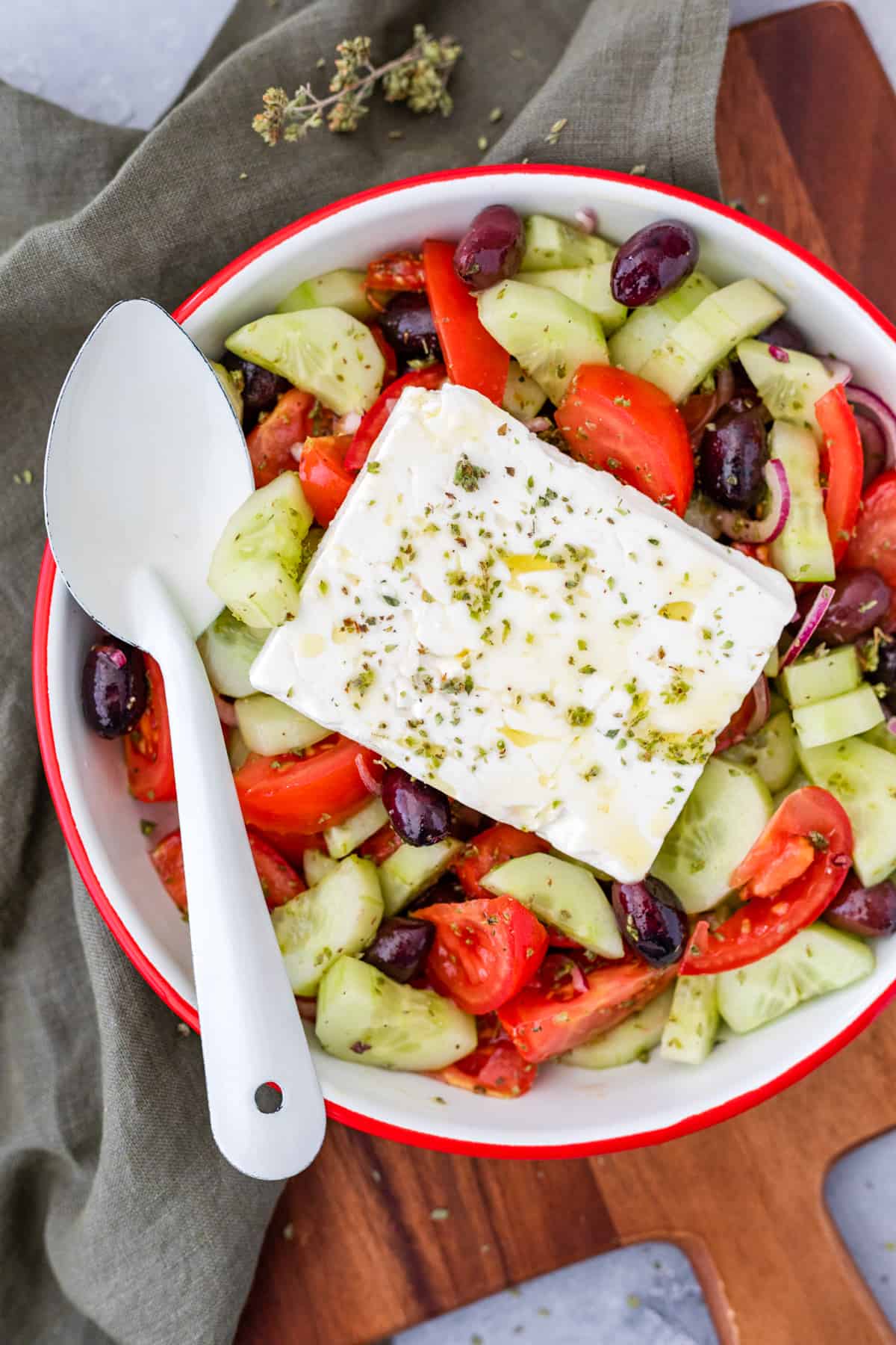 De lekkerste Griekse salade is zo gemaakt. Met de beste ingrediënten zoals feta en kalamata olijven, een flinke scheut Griekse olijfolie extra vergine en een royale hoeveelheid gedroogde oregano. Die eet je lekker als lunch, bij een stukje gebakken vis of vlees of als bijgerecht tijdens een barbecue. Je kunt er alle kanten mee op en het smaakt altijd heerlijk.