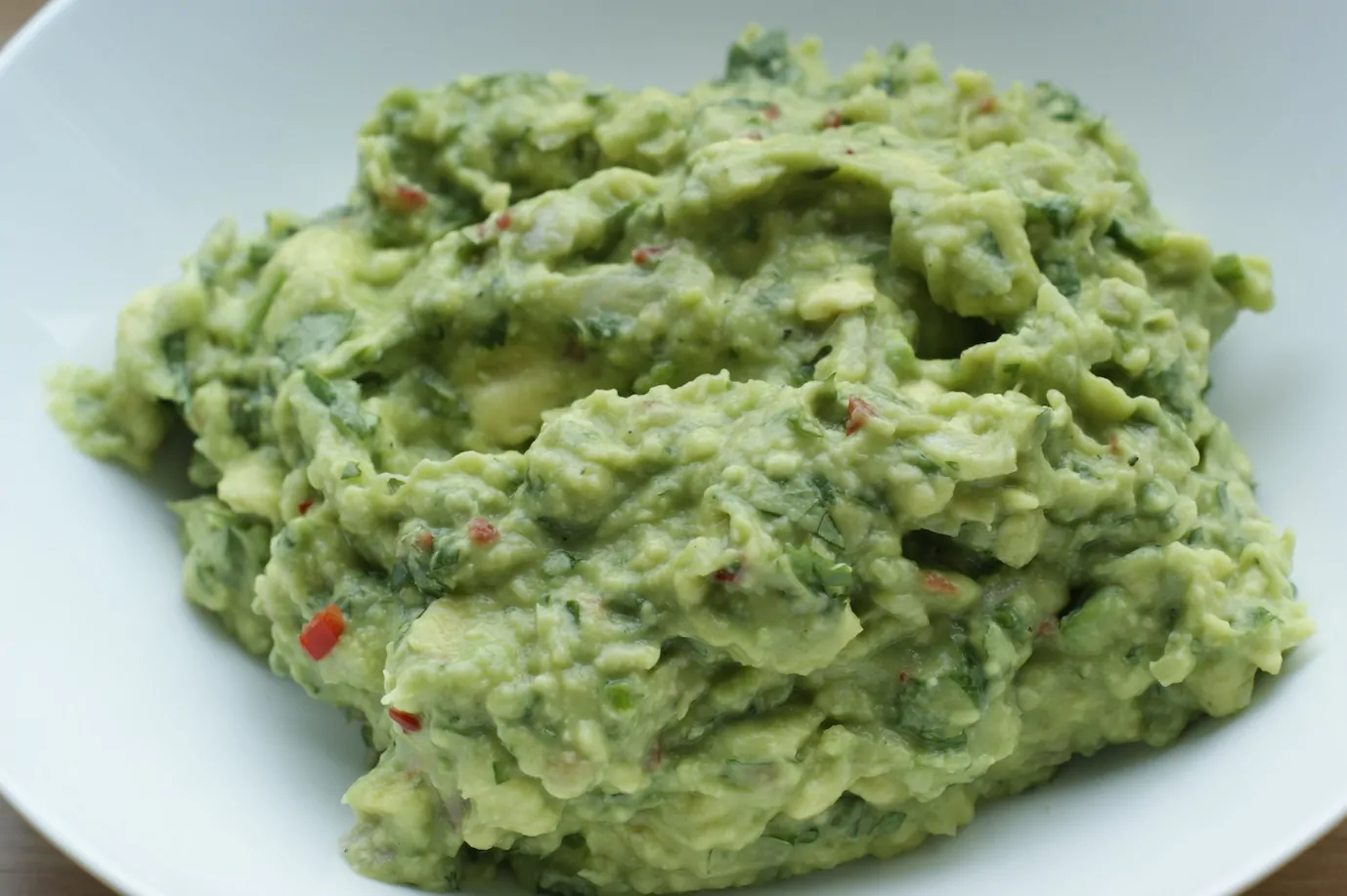 Guacamole komt uit Mexico en is een mix van avocado’s, op smaak gebracht met sjalot, knoflook, koriander, en chilipeper. Het past perfect bij een uitgebreide maaltijd, maar het is ook heel lekker om je tortillachips erin te dippen. Toen vorig jaar een aantal personen met hun vingers de restjes uit de kom aan het schrapen was, vond ik dat niet vies, nee dat is vleiend! Mijn guacamole valt in de smaak! YES!