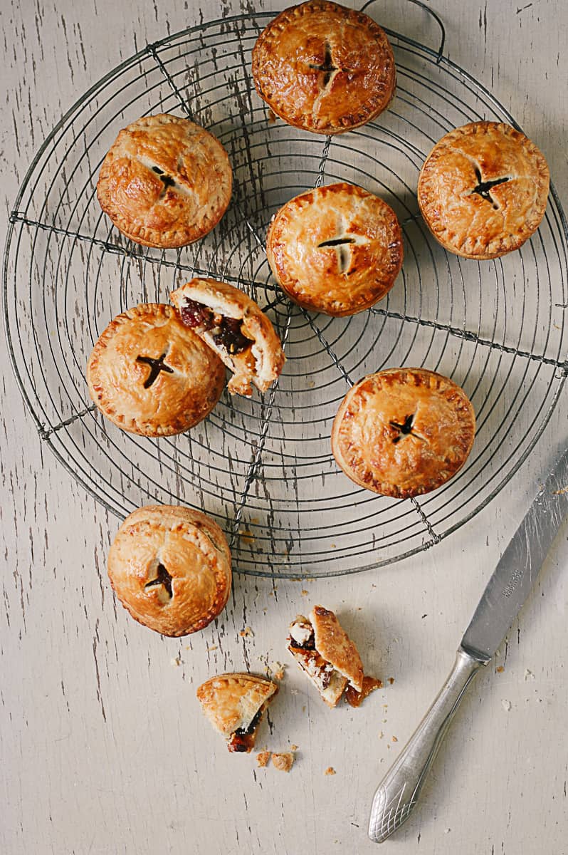 Een heerlijk herfstreceptje moest dit worden en hoewel ik het idee voor hand pies al langer in mijn hoofd had, liet het idee voor de vulling nog wat langer op zich wachten. De kleuren van de herfst waren uiteindelijk mijn inspiratie voor de vulling. Het oranje, bruin en geel van de bladeren doet me denken aan gedroogd fruit, noten en mandarijnen dus daar ging ik mee aan de slag.
