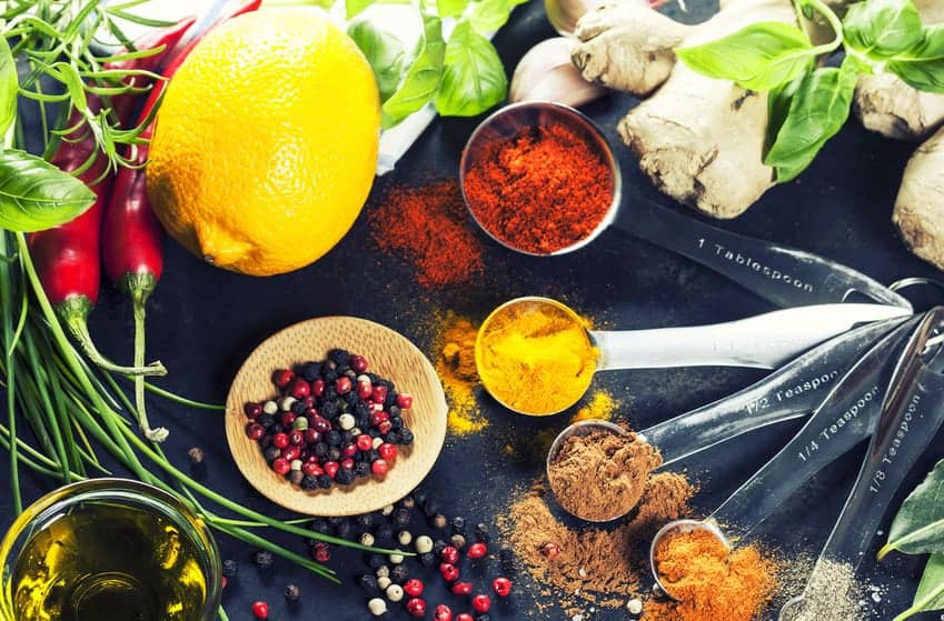 Verse kruiden, gedroogde specerijen, goede azijnsoorten, peper, uien, knoflook, chili, gember en zo kan ik nog wel even doorgaan. Allemaal zoutarme smaakmakers die wonderen doen in je gerecht.