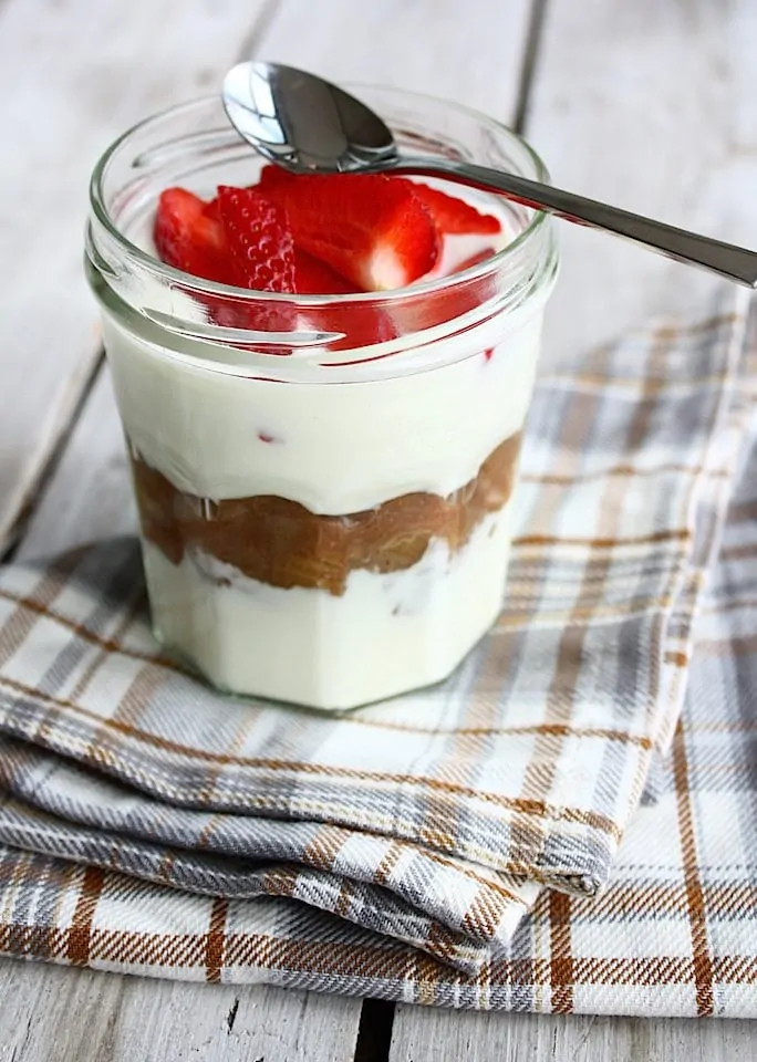 Waarschijnlijk heb je zowel rabarber als hangop over. Geen probleem, daar kun je geweldig mee ontbijten de volgende dag. Of gewoon weer een toetje van maken.