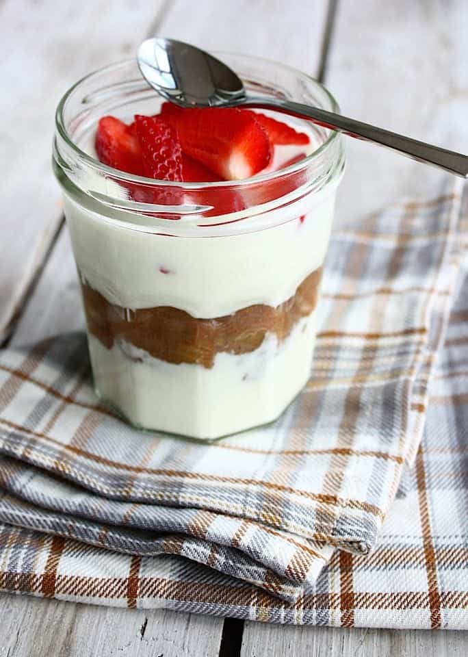 Waarschijnlijk heb je zowel rabarber als hangop over. Geen probleem, daar kun je geweldig mee ontbijten de volgende dag. Of gewoon weer een toetje van maken.