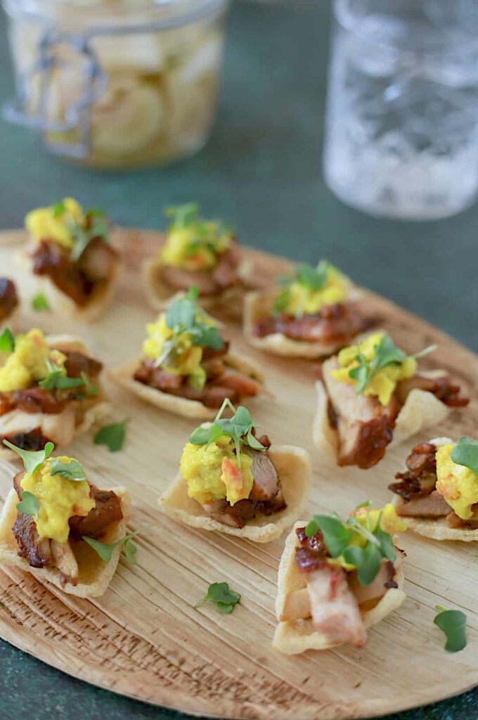 Vandaag deel ik met jullie een heerlijk hapje met Surinaamse kip, piccalilly en cassave. Want ontzettend makkelijk te maken en geweldig lekker is. Mijn eigen Mr. at het halve bord gelijk leeg en vroeg me of ik ze vaker wilde maken. Dat zegt genoeg 😉