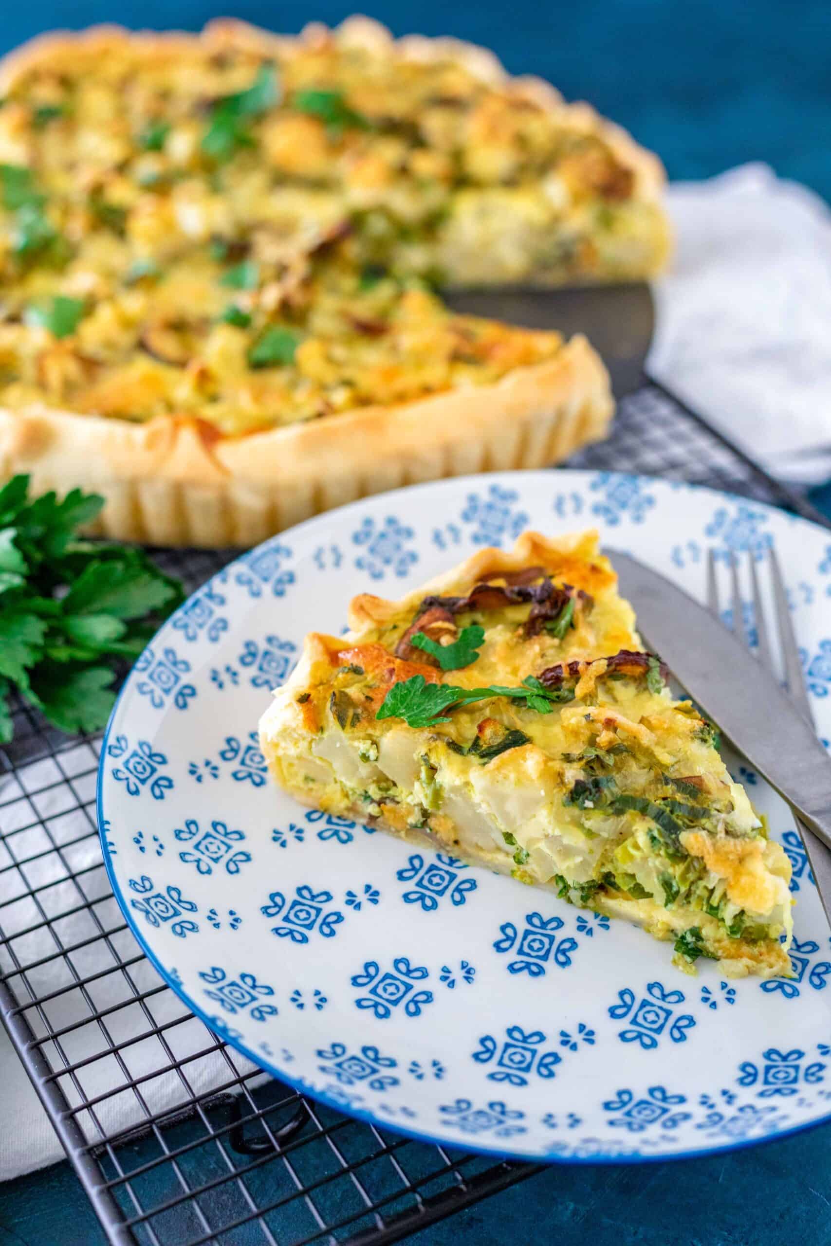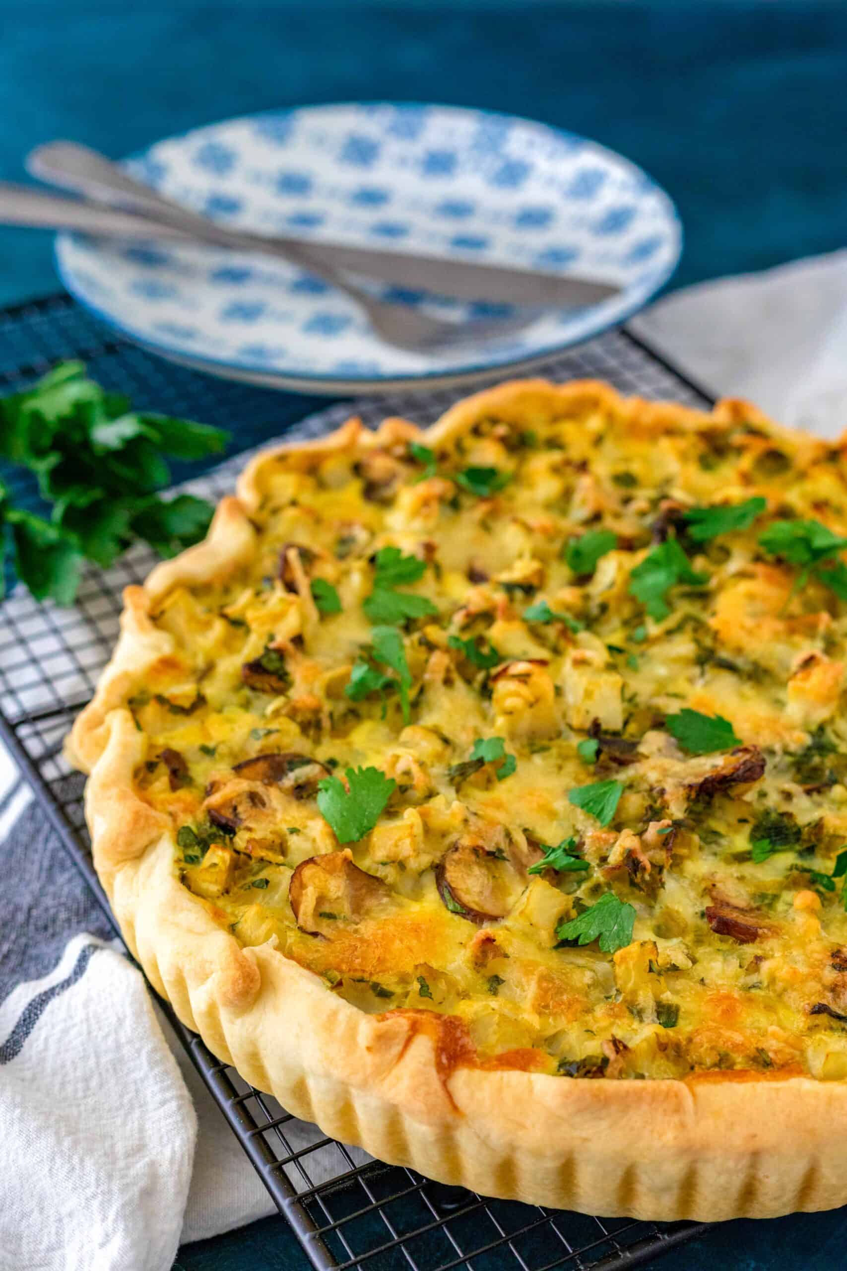 De knolselderij zorgt voor een romige basis samen met de eieren en slagroom en ik top ‘m af met gebakken paddenstoelen met prei en kerrie. De platte peterselie geeft deze hartige taart met knolselderij nog een subtiel kruidige nasmaak. En doordat je gebruik maakt van koelvers taartdeeg staat je hartige taart ook nog eens heel snel in de oven. Geniet ervan!
