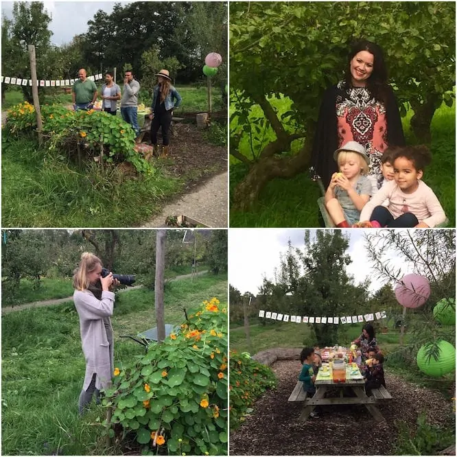 Inmiddels zijn de hoofdstukken bepaald en ben ik al druk aan het schrijven. Daarnaast hebben we in september de helft van de fotografie al gedaan. Deels receptfotografie en we hebben ook een dag met heel veel kinderen in de Zoetermeerse Wijktuin Broekweg gefotografeerd. We wilden heel graag met kids fotograferen die appels plukken, schoffelen, spelen en eten in de zon. En dat is meer dan gelukt. We werden getrakteerd op een heerlijk zonnetje en de foto’s zijn zo mooi geworden! Ik wou dat ik ze al aan jullie kon laten zien, maar nog even geduld. Ik heb natuurlijk wel wat ‘behind the scenens’ foto’s voor jullie. De sfeerfoto’s worden gemaakt door Wendy van Bree Fotografie. Zij heeft ook al mijn nieuwe foto’s voor de site gemaakt en ik ben enorm blij met haar.