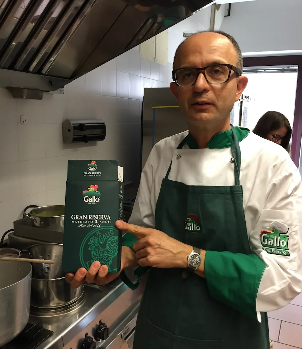 Maar hoe maak je risotto nou precies? Ik leerde onlangs bij Riso Gallo, het nummer 1 risottomerk in Italië, de fijne kneepjes van het vak. Midden tussen de rijstvelden in de Po Vallei staat de fabriek van Riso Gallo in het pittoreske plaatsje Robbio. Daar verwerken ze niet alleen rijst, ze houden er ook van. Ik vertel daar later deze maand nog wat uitgebreider over. Nu eerst terug naar de risottobereiding. Een van de belangrijkste regels: “Risotto was born in water and will die in wine”. Als je die de rest van je leven onthoudt, kan het eigenlijk niet meer misgaan.
