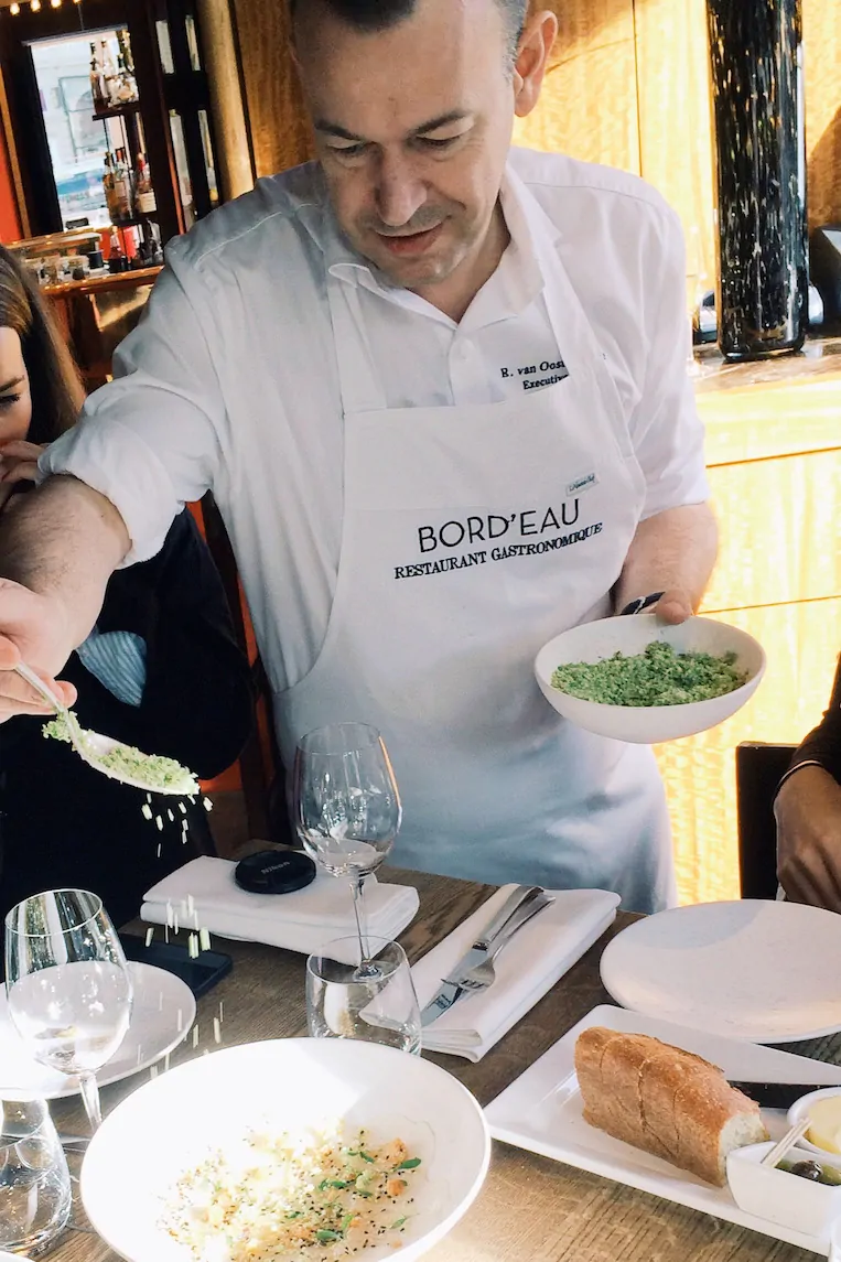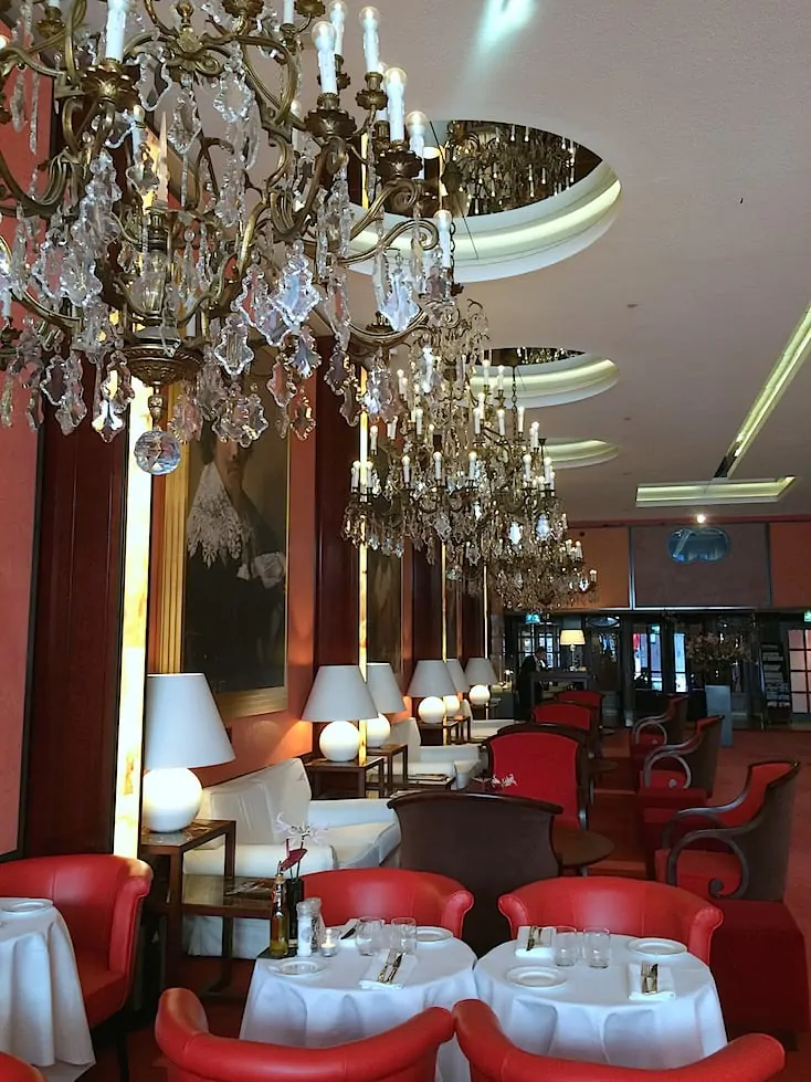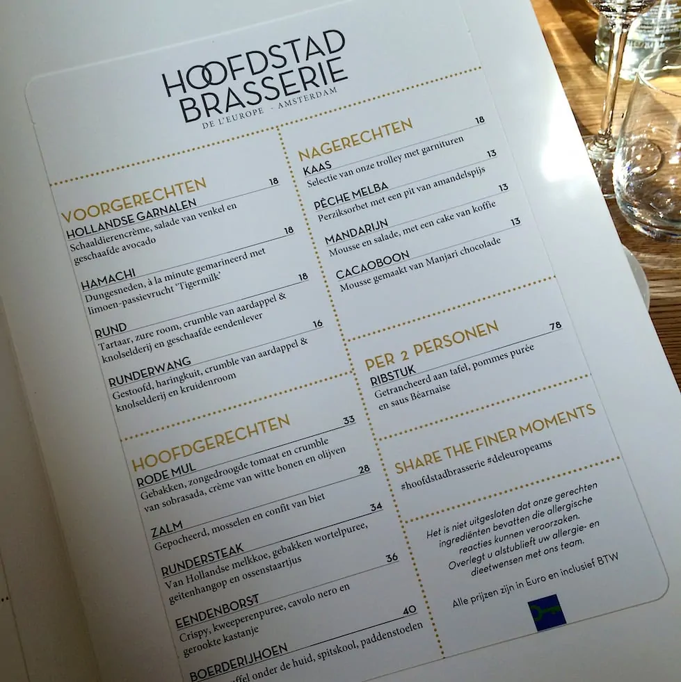 Door de grote draaideuren van Hotel de L’Europe, langs de entree met kroonluchters en over het rode tapijt loop je zo Hoofdstad Brasserie binnen. Je verwacht een chique restaurant, maar het zal je verrassen: het is een echte brasserie. Gelukkig maar, want het was natuurlijk wel een beetje spannend, mijn eerste persevent voor Francesca Kookt en we beginnen ‘gewoon’ even met een masterclass van sterrenchef Richard van Oostenbrugge.