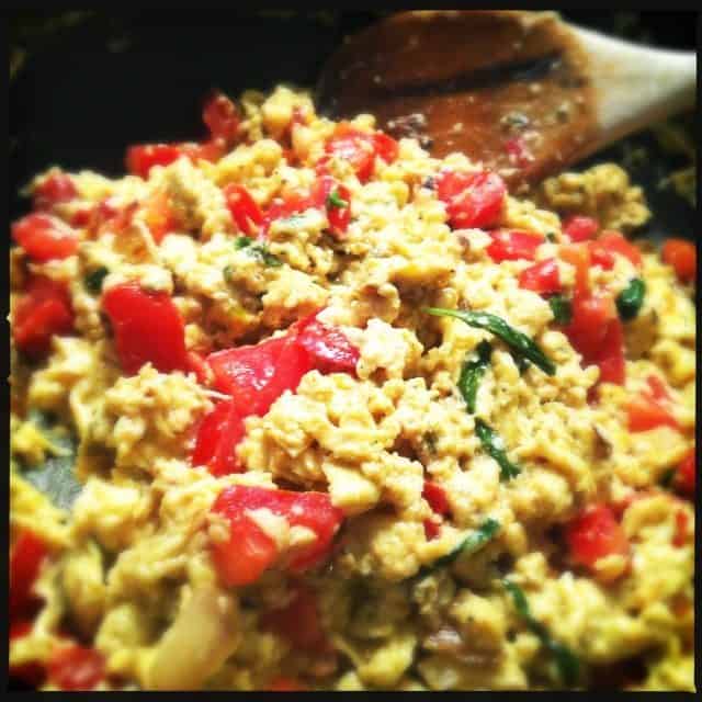 Als ik ‘niets’ in huis heb dan heb ik altijd nog wel ergens sjalotjes, tomaten en eieren liggen en wat verdwaald brood in de diepvries. Basilicum is ook geen issue, want dat groeit vrolijk door aan het plantje wat in de serre staat.
