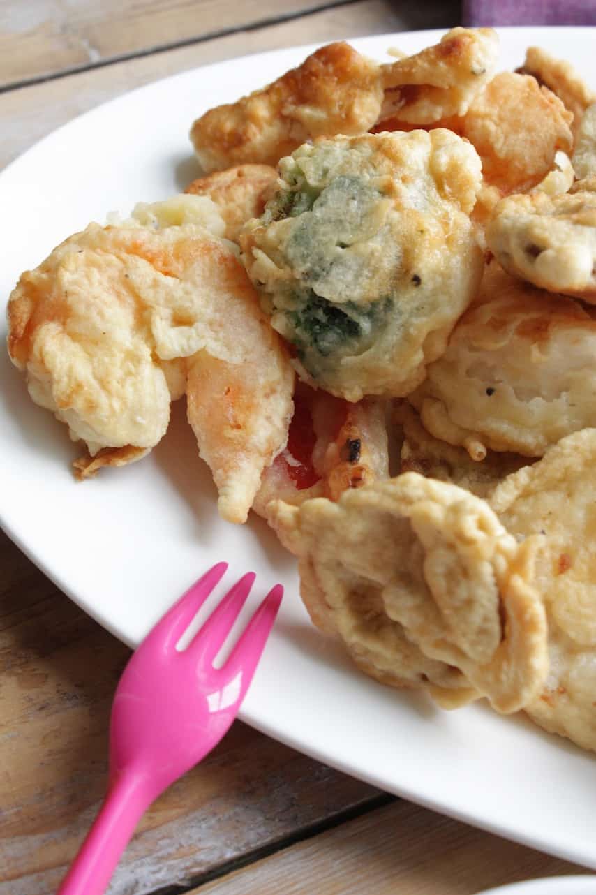 Geweldig vind ik het dan ook dat ik vandaag een recept uit haar boek mag publiceren en we reizen daarvoor naar Japan! Een heel bekend gerecht uit dit land is tempura, waarbij je ingredienten in een beslag dipt en daarna frituurt in de olie. Je kunt hiervoor heel veel verschillende groenten, maar ook garnalen en witvis gebruiken. Een ideaal recept voor kinderen, want niet alleen ziet het er aantrekkelijk voor ze uit, ze mogen het ook nog eens in de sojasaus dippen. Succes verzekerd!