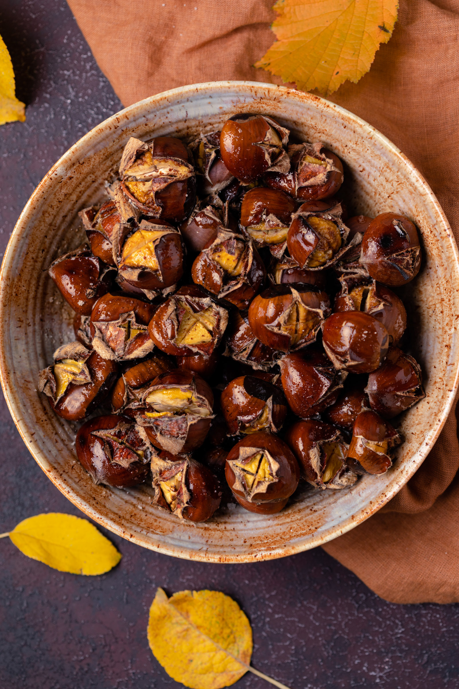 - Na het pellen kun je de gepofte kastanjes ook mengen met een scheutje melk, koken en pureren voor een kastanjepuree. Op smaak gebracht met boter, zout en peper is het een heerlijk bijgerecht.