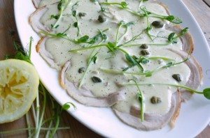 “Italiaanse traditie ten top, een rosé bij heerlijke vitello tonnato. Een friszachte bleke zalmroze rosé wijn met verleidelijk fruit. De mooie kleur komt mede door het schilletje van de druif wat op natuurlijke wijze verwerkt wordt.”