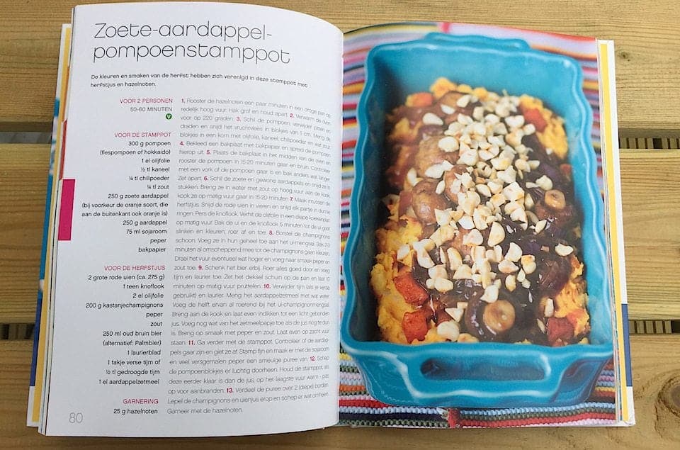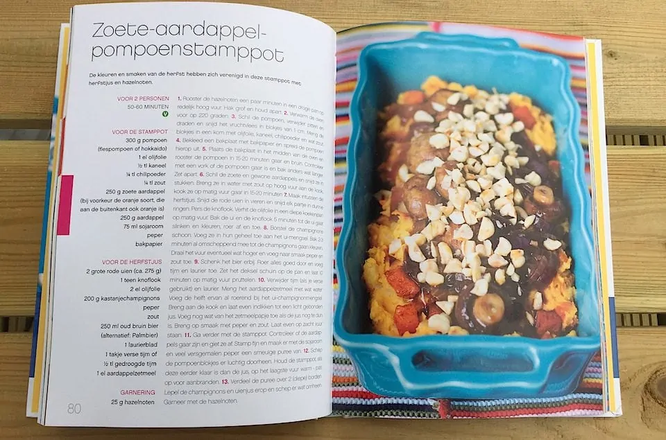 Voordat ik jullie het recept ga geven, wil ik de redactie een dikke pluim geven voor dit mooie boek. Vegetarisch koken is ontzettend lekker. En of je nou vegetariër bent of gewoon af en toe wat minder vis en vlees wilt eten zoals wij, met dit boek haal je een bak aan inspiratie aan huis.