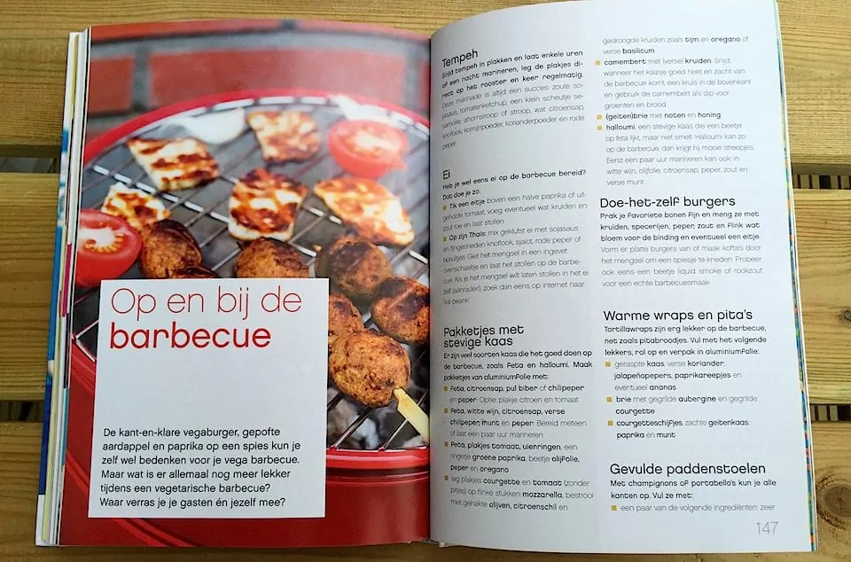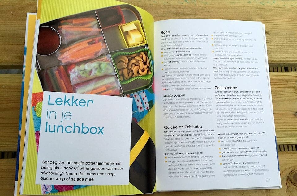 Het boek is ingedeeld in de dagen van de week en die hebben allemaal een eigen thema gekregen. Zoals de ‘makkelijke maandag’, ‘Hollandse donderdag’, ‘feestelijke zaterdag’ en ‘zoete zondag’ bijvoorbeeld. Verder staat het boek boordevol handige tips. Want wat serveer je nou op een vegetarische BBQ, wat stop je in je lunchbox en hoe zit het met de kinderen? Hierop geven de enthousiaste redactieleden je allemaal het antwoord.