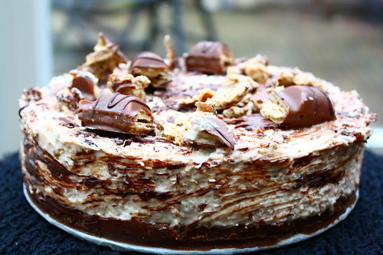 De taart is erg makkelijk om te maken, het enige wat je vooral nodig hebt is een beetje geduld. Wacht niet te lang met het opeten van de taart aangezien de Kinder Bueno die als garnering op de taart liggen na een tijdje zacht worden en dat is zonde. Ik adviseer om de taart in kleine stukjes te serveren, want hij is wel een tikkeltje machtig. Verder is de taart precies zoals ik had verwacht: een echte cheesecake met de smaak van die overheerlijke Kinder Bueno’s.