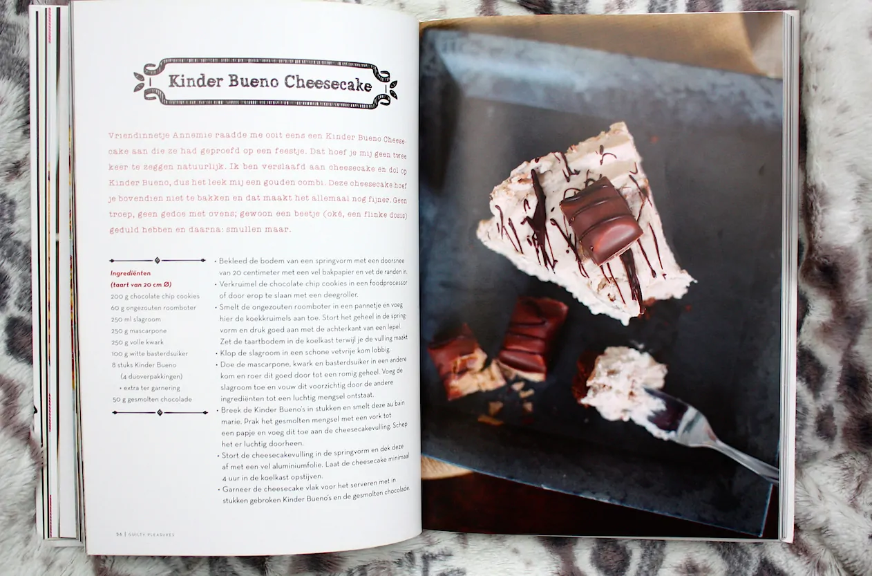 Er waren een aantal recepten die direct mijn aandacht trokken: de bierkip uit de oven, monchoutaart, mams hacheepastei, Big Mac en Oreo Nutella ijs. Maar toen ik de Kinder Bueno Cheesecake voorbij zag komen was ik verkocht. Kinder Bueno zelf is al geniaal, maar in een cheesecake kan dit alleen nog maar beter worden.
