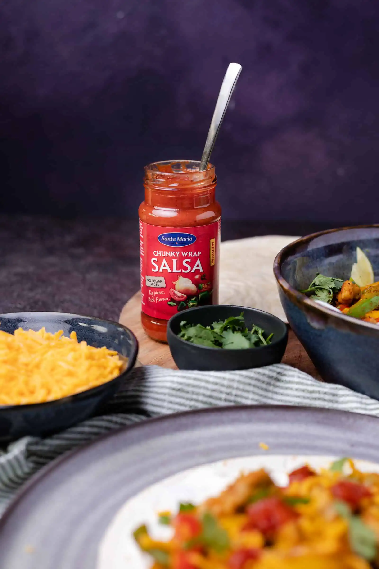 En last but not least: salsa als topping! Ik ben dol op de chuncky wrap salsa van Santa Maria die zowel in de smaak mild als hot verkrijgbaar is. Afhankelijk van je tafelgenoten kies je voor de meest geschikte smaak.