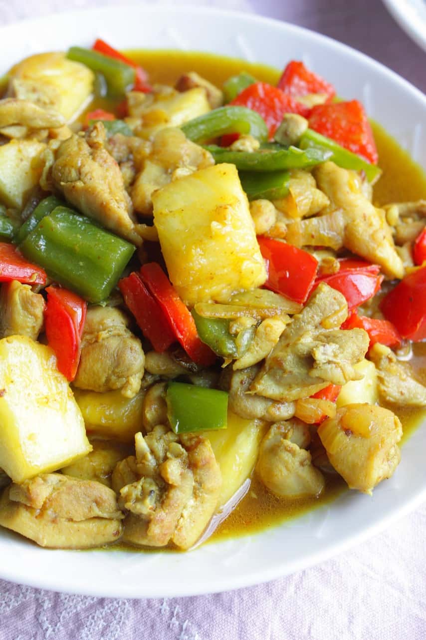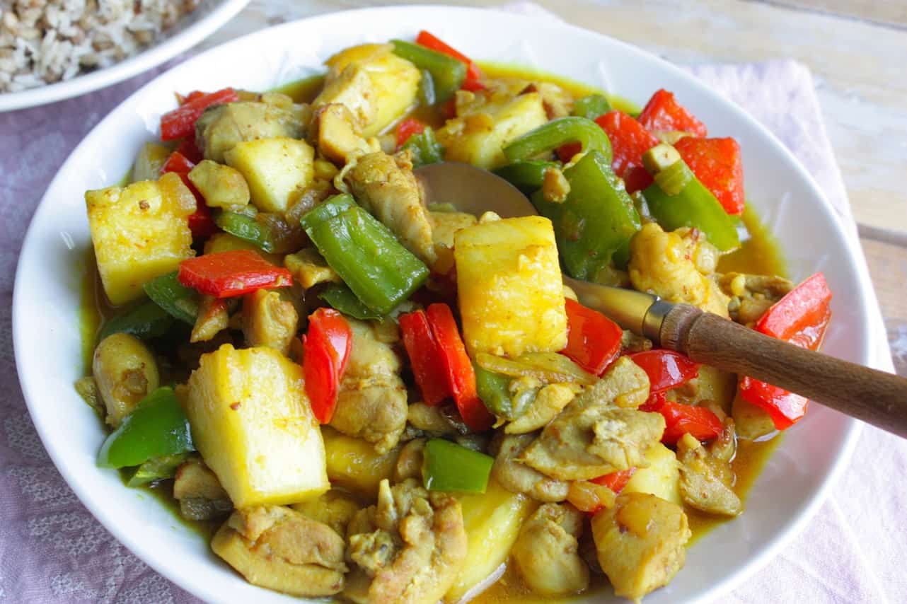 8. Serveer de kip kerrie met ananas met een schaal rijst en eventueel een simpele salade met tomaat.