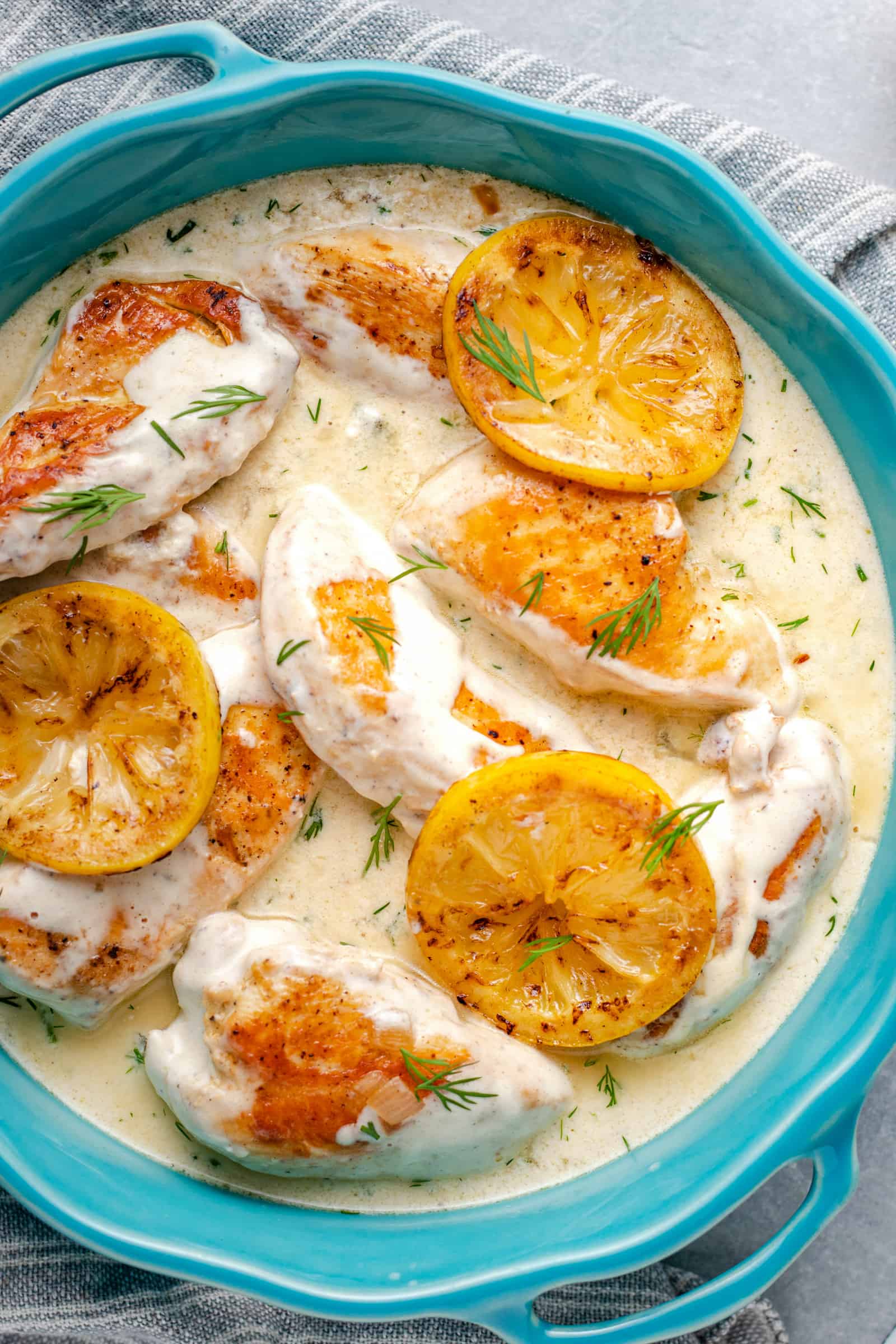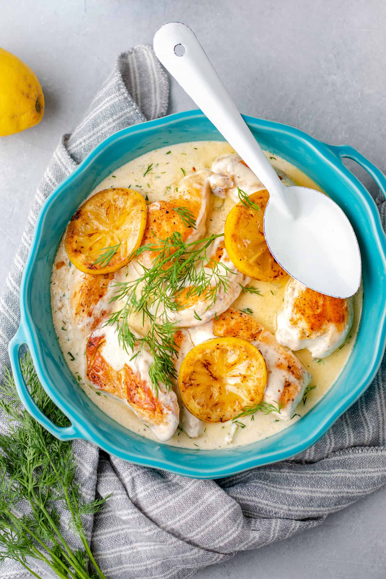 Kipfilet met een romige saus is altijd een top combi, zeker als je er ook nog citroen en dille aan toevoegt. Met dat idee in mijn achterhoofd ging ik aan de slag om een heerlijk en makkelijk kiprecept voor doordeweeks te maken. Dat werd deze kipfilet in yoghurtsaus met citroen, augurk en dille!