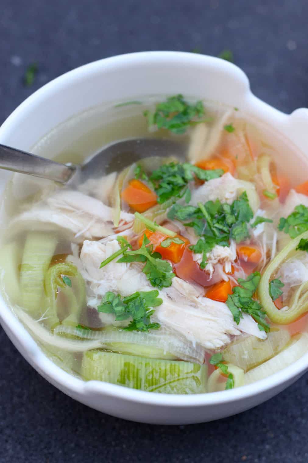 Zelfgemaakte kippensoep in de herfst, misschien wel een van mijn meest favoriete comfort food gerechten. Helemaal als ik een beetje grieperig ben. Vandaag deel ik met jullie mijn recept voor kippensoep met nootmuskaat en foelie die je zelf maakt, zonder toegevoegde bouillonblokjes dus. Niet dat ik anti-bouillonblokjes bent, maar zonder kan ook.