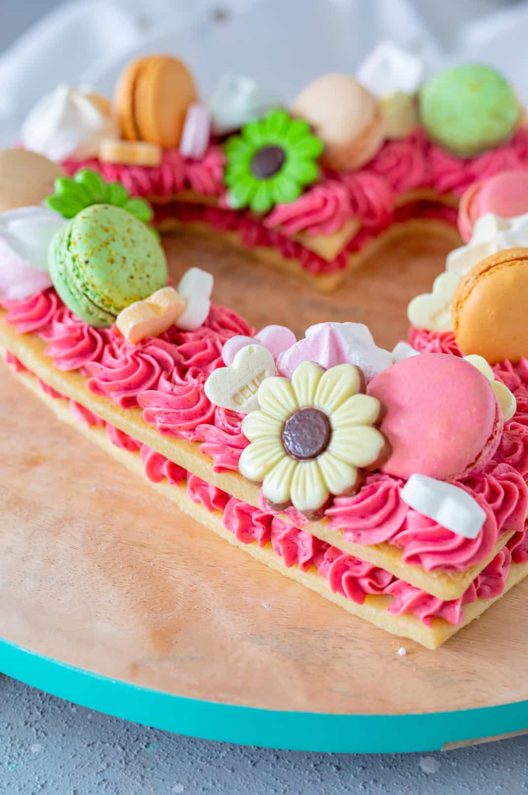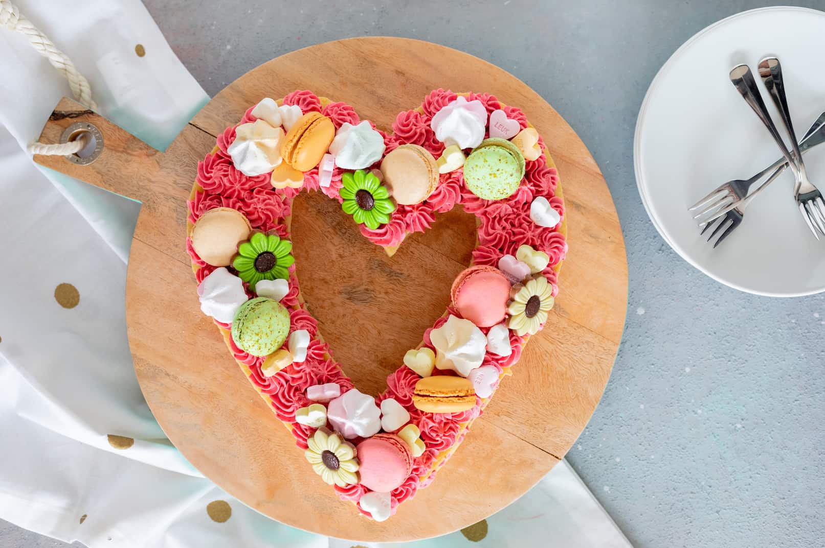 Sinds ik zelf moeder ben, weet ik hoe groot de liefde is van moeders voor hun kinderen en dat eigenlijk niks te gek is als het om je kinderen gaat. Prachtig natuurlijk, zo’n onvoorwaardelijke liefde en des te meer reden om op Moederdag je eigen moeder eens goed te verwennen. Dit koekhart voor Moederdag met frambozencrème gaat zeker in de smaak vallen! Het is niet alleen heel erg lekker, maar ziet er ook fantastisch uit! Je kunt het koekhart rijkelijk versieren met allerlei heerlijke toppings of zelfs eetbare bloemen gebruiken. Het koekhart zelf kun je prima 1 of 2 dagen van tevoren maken en op de dag zelf pas de vulling erop spuiten, zo kun je het ook goed voorbereiden.