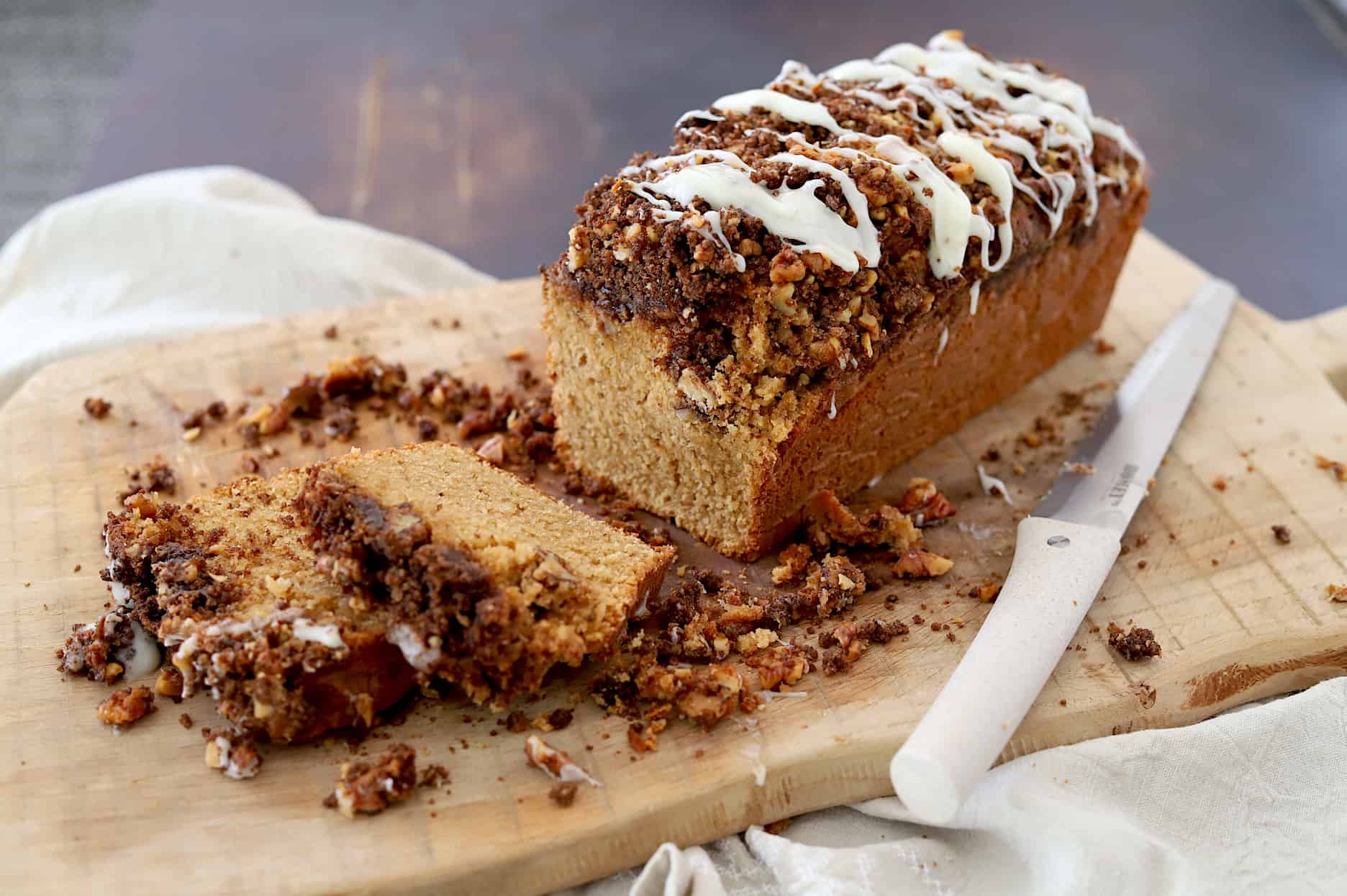 Met dit recept maak je een heerlijke koffiecake met volle smaak en een lekkere walnotencrumble erbovenop. Geen zorgen, alhoewel er best een behoorlijke hoeveelheid koffie in gaat, durf ik te beweren dat hij echt voor iedereen geschikt is. Ik ben namelijk geen koffiedrinker en vind deze cake ook superlekker. Het glazuur maakt de koffiecake lekker zoet, maar ook zonder is hij al heel smakelijk! Fijne zondag 🙂