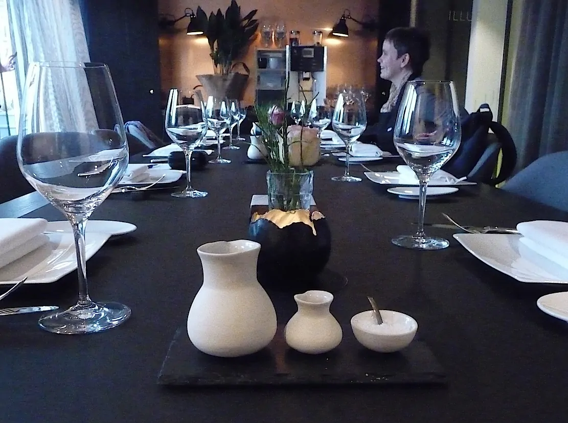 Sous Tom bespreekt vluchtig het complete menu, zodat iedereen kan kiezen wat we in groepjes van 2 gaan maken. Als we teams hebben gevormd, nemen we op ons gemak alle gangen apart door. Ik beland bij het geweldige hoofdgerecht, waar ik zeer zeker de rode kool crème vaker van ga eten. Omdat ik het dessert verrassend en fantastisch vond, deel ik het bijzondere receptuur met jullie. Niet schrikken van de ingrediënten. Echt, het gaat waanzinnig smaken!