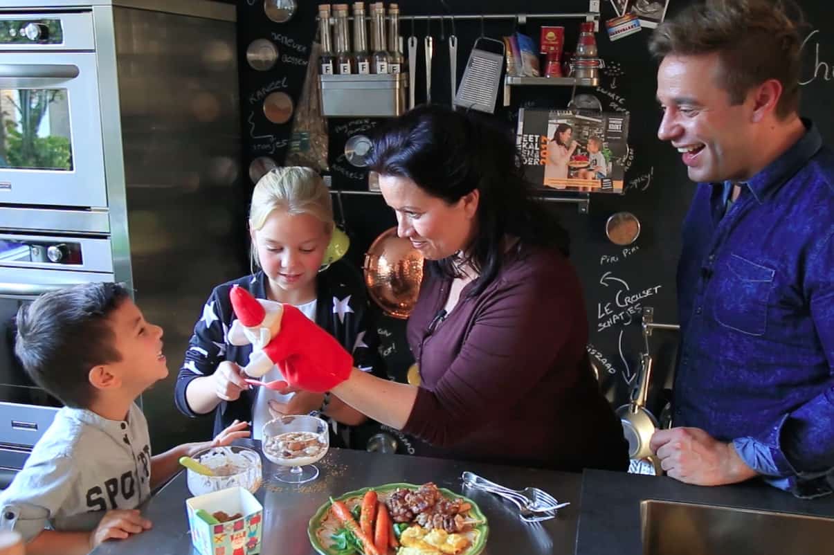 De eerste aan wie ik moest denken voor dit plan was Mathijs Vrieze! Van deze gezellige tv-kok en culinaire duizendpoot krijg ik altijd een glimlach op mijn gezicht en ik besloot hem uit te nodigen voor een kookmiddag samen met onze kleuter Jessey en Ilja, de dochter van Lekker eten met Linda. Hij zei gelijk ja en een paar weken later stonden we al in mijn keuken met keiharde sinterklaasmuziek recepten te maken en daar is een heel leuk filmpje van gemaakt 🙂