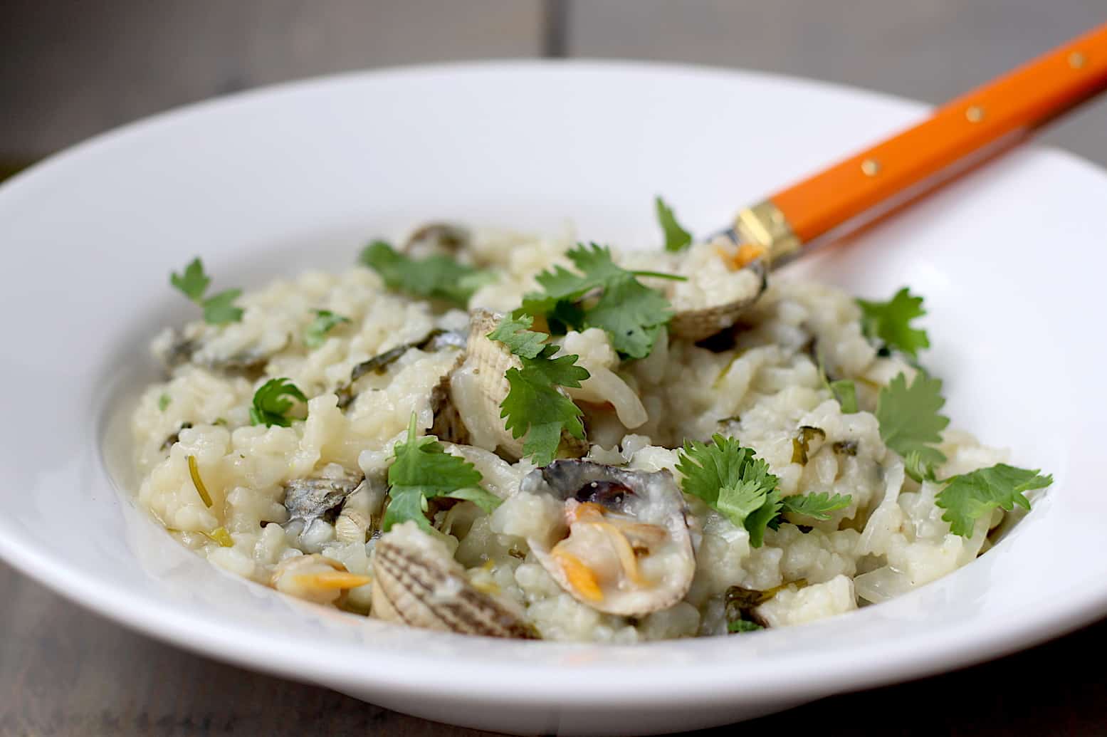 Ik wilde thuis natuurlijk mijn eigen variant op dit gerecht maken en dat werd deze kokkels met citroen en rijst. De basis van het gerecht blijft de citroenrijst en daar kun je veel andere vissoorten of schelpdieren aan toevoegen. Smaakt denk ik ook heerlijk met kabeljauw of andere stevige witvis, mosselen en octopus.