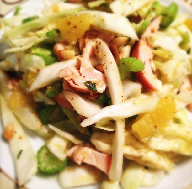 Het is iedere week weer een uitdaging om thuis te varieren met lunchgerechten. Als je minder brood wilt eten tijdens deze maaltijd dan zijn salades een geweldig alternatief. En het mooie is, je kunt blijven verrassen, want er zijn zoveel combinaties mogelijk. Zoals bijvoorbeeld deze koolsalade met gerookte kip en citrus. Je kunt de salade thuis eten of meenemen naar kantoor. Om dit zo efficiënt mogelijk klaar te maken in de ochtend zorg je ervoor dat alle groenten de avond ervoor zijn gesneden en dat je de partjes al uit de citrusvruchten hebt gehaald. Je hoeft ‘s ochtends dan alleen nog maar alles te mengen met de kip en de dressing te maken.