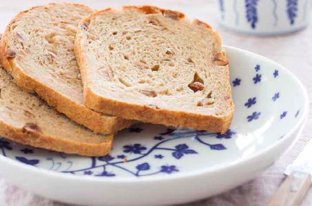 Deeg in een broodbakmachine kneden: doe alle ingrediënten voor het deeg in de bak en kneed in 10 – 15 minuten tot een soepel deeg dat van de wand van de bak loslaat. Het deeg is goed gekneed als je er een vliesje van kunt trekken. Laat het deeg 15 minuten afgedekt staan er kneed er dan met de machine of met de hand (zie hieronder) de krenten door.