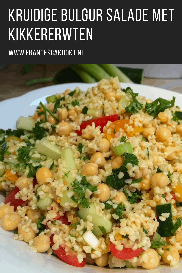 Je koopt bulgur bij de (Turkse) toko en tegenwoordig is het ook goed verkrijgbaar in de supermarkten. Zo heeft Albert Heijn nu ook de Artisan Grains in de collectie en de volkoren bulgur van dit merk vind ik erg smakelijk. Ik maakte er onlangs een kruidige bulgur salade met kikkererwten van. Nou was de timing wellicht niet perfect (halve finale WK met bitterbalvragende mannen in huis), maar het resultaat was nog steeds fantastisch. De vrouwen hebben er heerlijk van genoten, bakjes gingen mee naar huis en de volgende dag hebben we er ook nog mee geluncht.