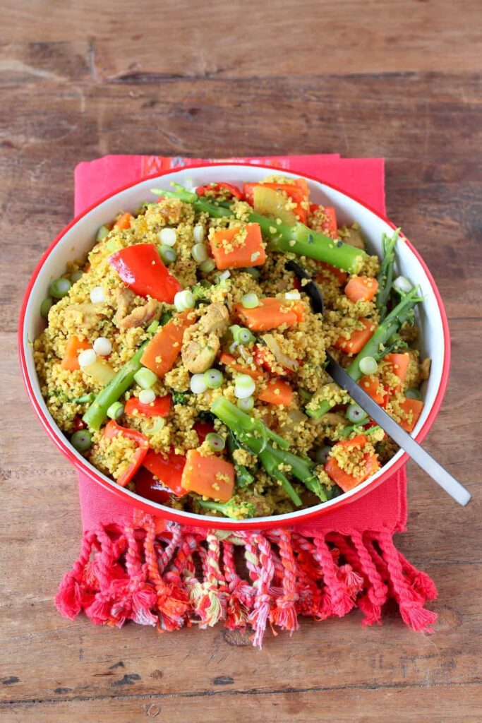 Couscous met groenten en kip – met dit gerecht kan gewoon bijna niets mis gaan! Het recept is ook nog eens heel makkelijk om te maken en geschikt voor jong en oud binnen het gezin.