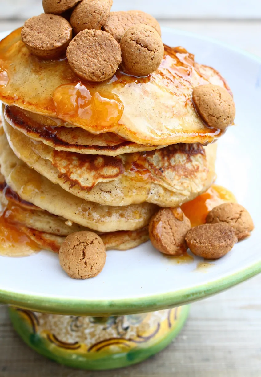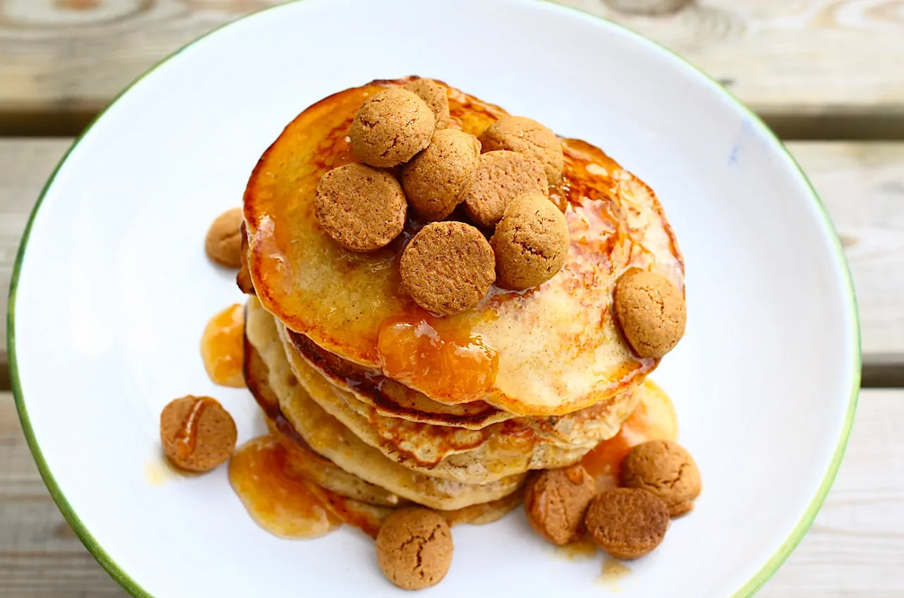 De zon scheen, we ontbeten buiten en het leek wel lente. Terwijl het toch echt november was en ik de eerste zak kruidnootjes alweer had ingeslagen. Inmiddels is de ‘lente’ voorbij en giert de wind door de straten. Maar toen de zon nog scheen, maakte ik al een eerste recept voor Sinterklaas. Kruidnoten met pancakes om precies te zijn. Heerlijk in combinatie met een vleugje sinaasappel. Dat wordt genieten op sinterklaasochtend!