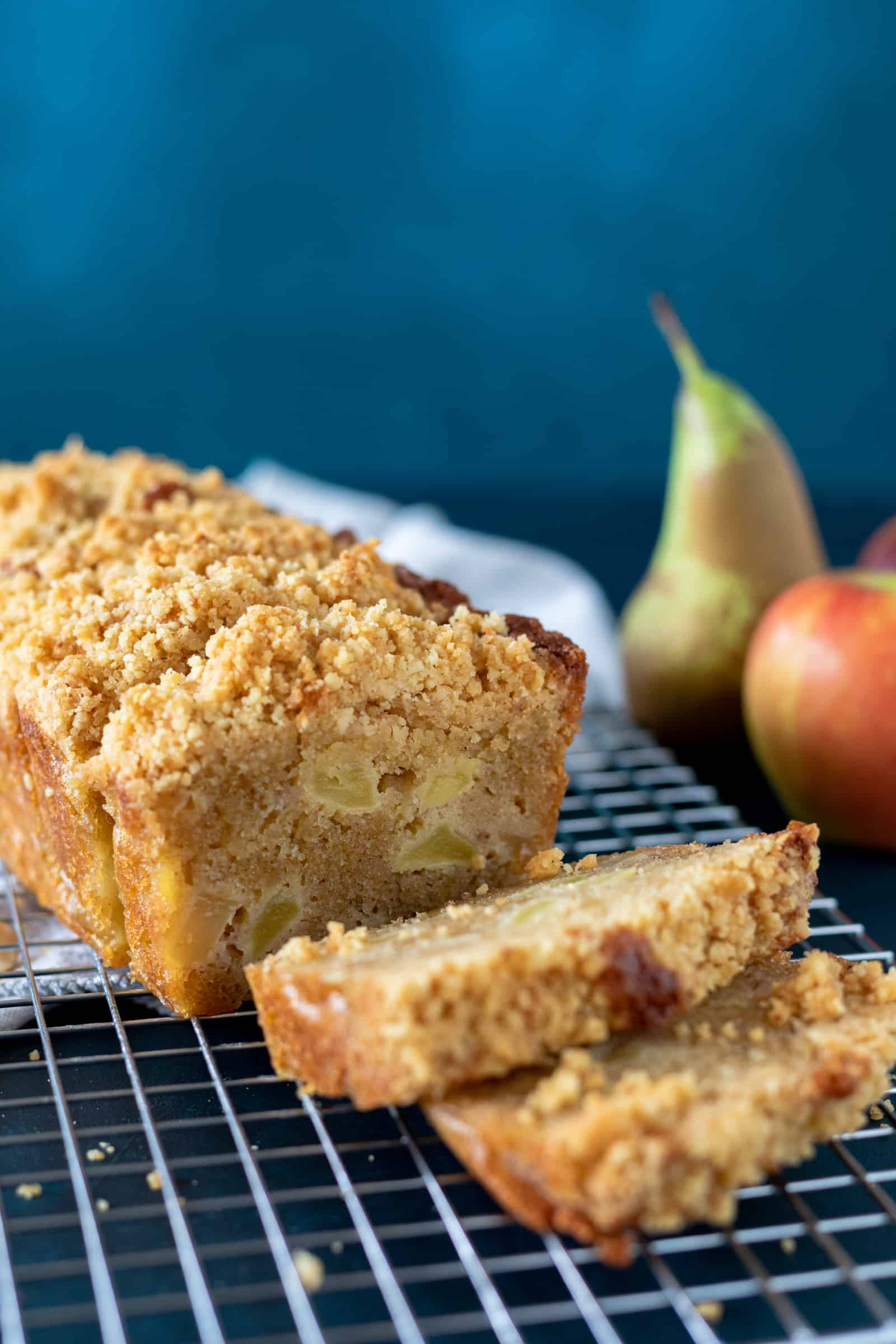 Ik ben er dol op. Een zachte, smeuïge cake met een krokante kruimellaag. Oftewel een kruimelcake. En laat die nou heel makkelijk zijn om zelf te maken. Vandaag heb ik een heerlijk recept voor kruimelcake met appel, peer en koekkruiden voor jullie. En die kun je ook maken met alleen appel of peer. En die koekkruiden kunnen ook speculaaskruiden of kaneel zijn. Eigenlijk kun je er alle kanten mee op, met een grote gemeenschappelijke deler: de kruimelcake wordt zalig!