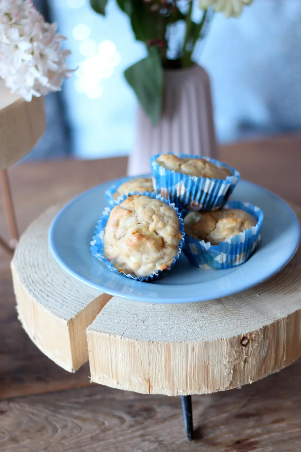 Onlangs had ik appel-kaneel kwarkyoghurt in huis en daar bakte ik deze zalige kwarkmuffins met appel en banaan mee. Lekker als tussendoortje voor jong en oud en stiekem heb ik er ook al mee ontbeten. Het hoeft trouwens niet per se deze kwarkyoghurt te zijn. Met gewone kwark kom je er ook, ik zou dan nog wel een snufje kaneel en wellicht wat lichtbruine basterdsuiker of een scheutje honing aan het beslag toevoegen.