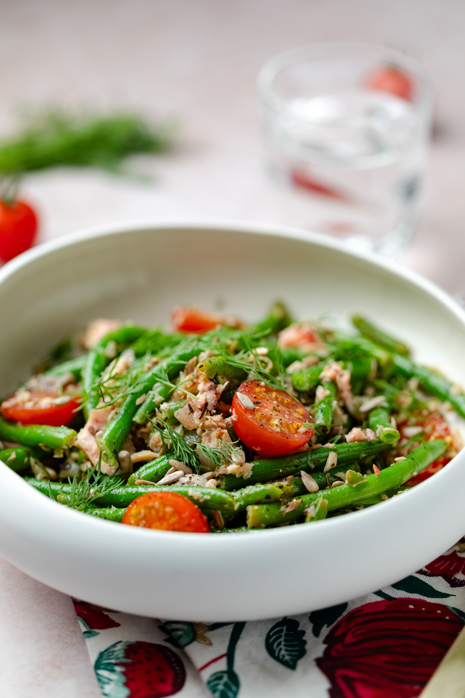 Zin in een gezonde, snelle en smaakvolle lunch? Deze lauwwarme salade met sperziebonen, wilde zalm en dille zet je in 20 minuten op tafel! Hij is heerlijk fris en kruidig, en je kunt ‘m perfect mealpreppen voor de volgende dag. Of je nu kiest voor verse sperziebonen in het seizoen of een snelle variant met diepvries sperziebonen, deze salade zit boordevol smaak en voedzame ingrediënten.