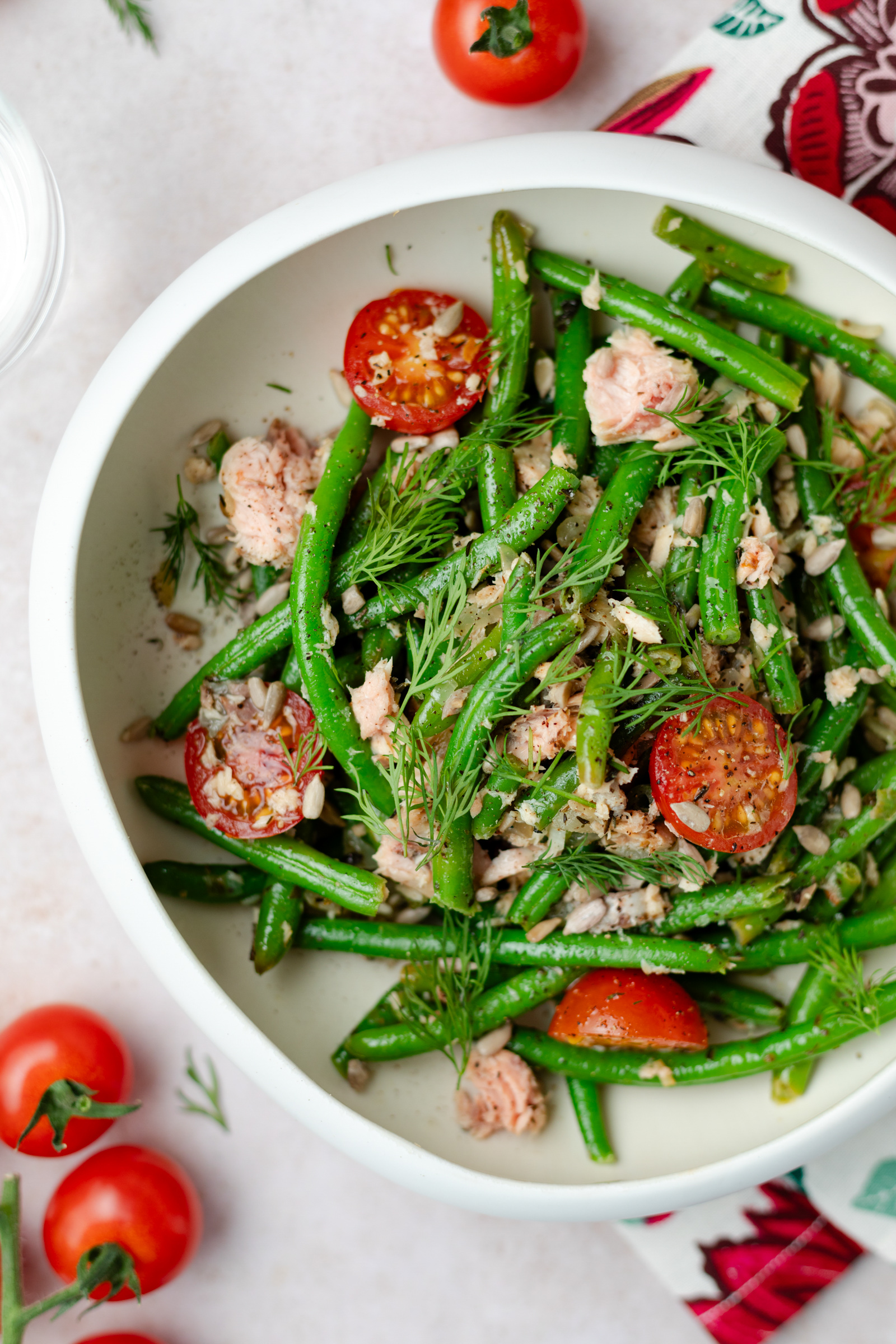 Ontdek hieronder het recept voor deze salade met sperziebonen en wilde zalm. Daarin geef ik je ook nog wat variatietips En ben je op zoek naar een vegetarische variant? Dan laat je de zalm achterwege en voeg je geroosterde kikkererwten toe voor een lekkere bite.