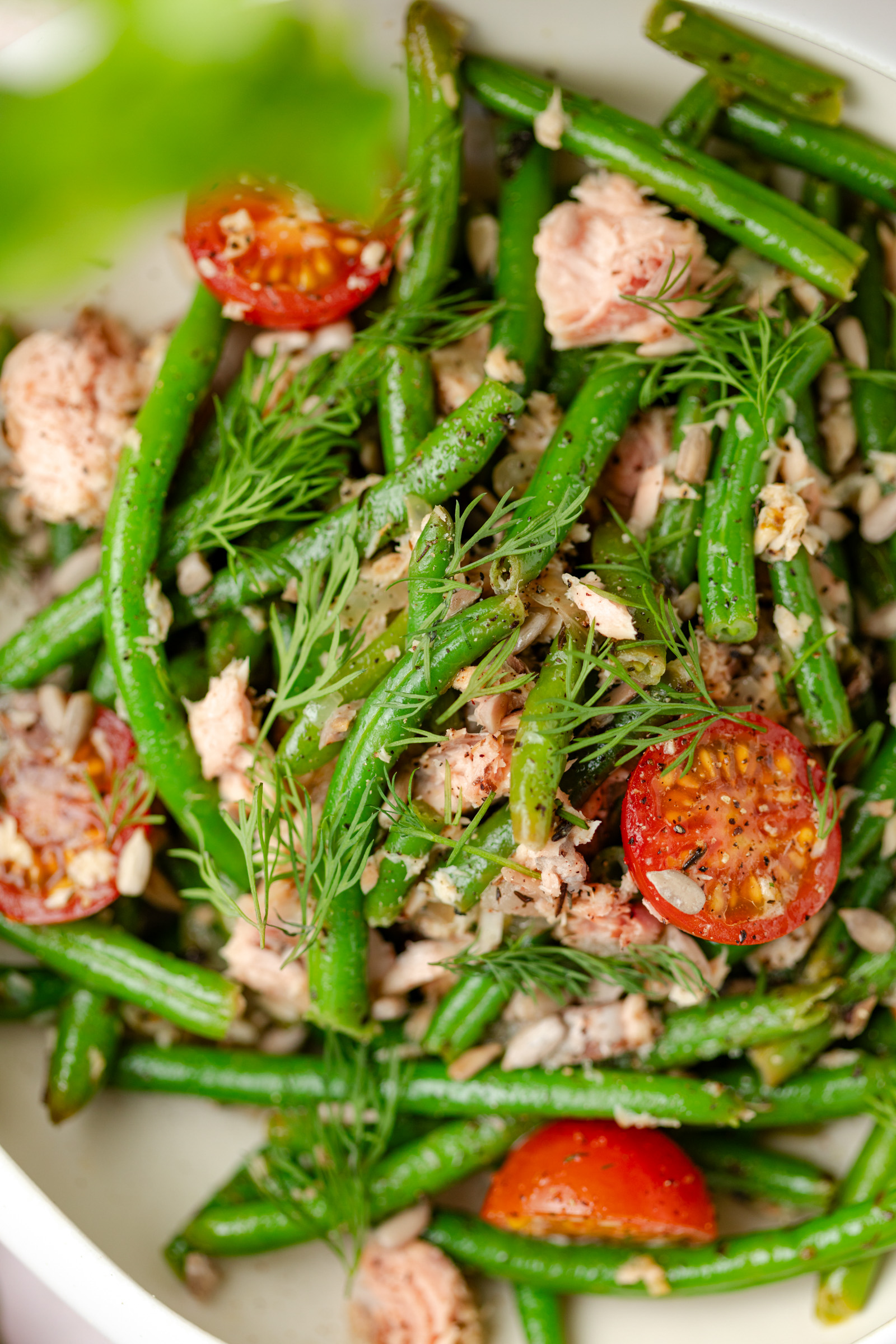 Ontdek hieronder het recept voor deze salade met sperziebonen en wilde zalm. Daarin geef ik je ook nog wat variatietips En ben je op zoek naar een vegetarische variant? Dan laat je de zalm achterwege en voeg je geroosterde kikkererwten toe voor een lekkere bite.